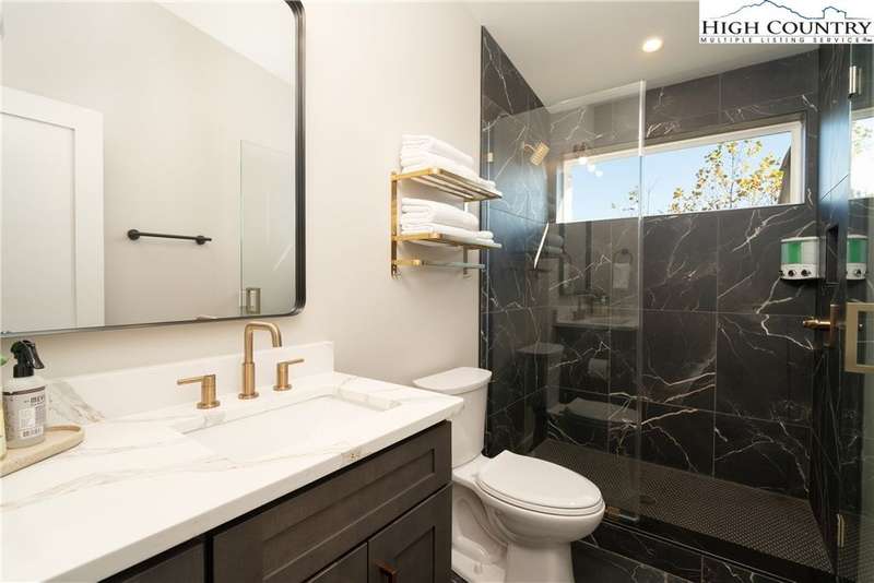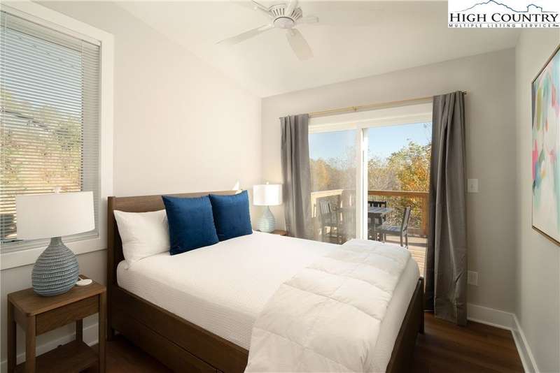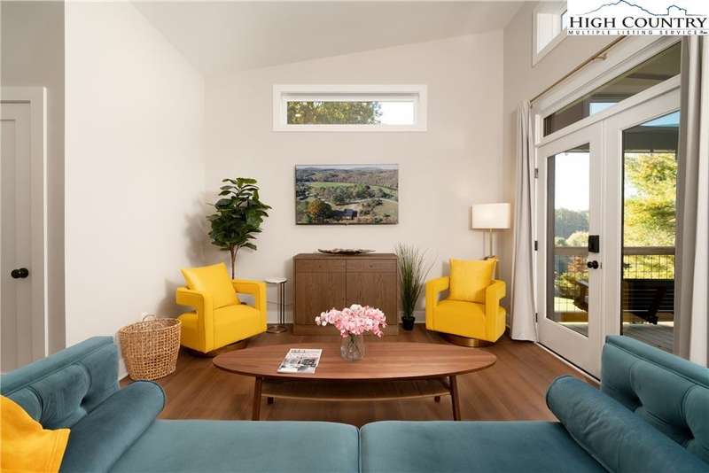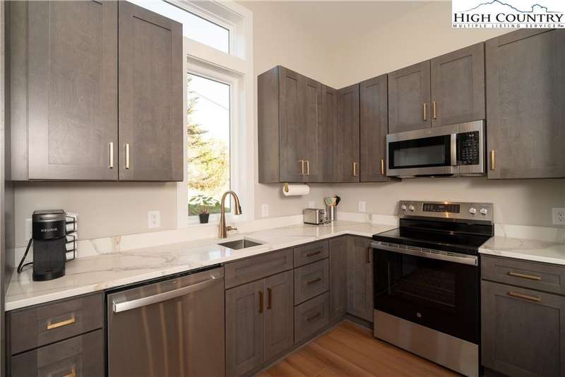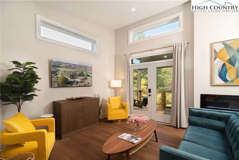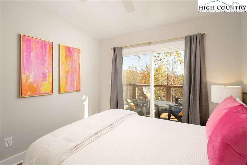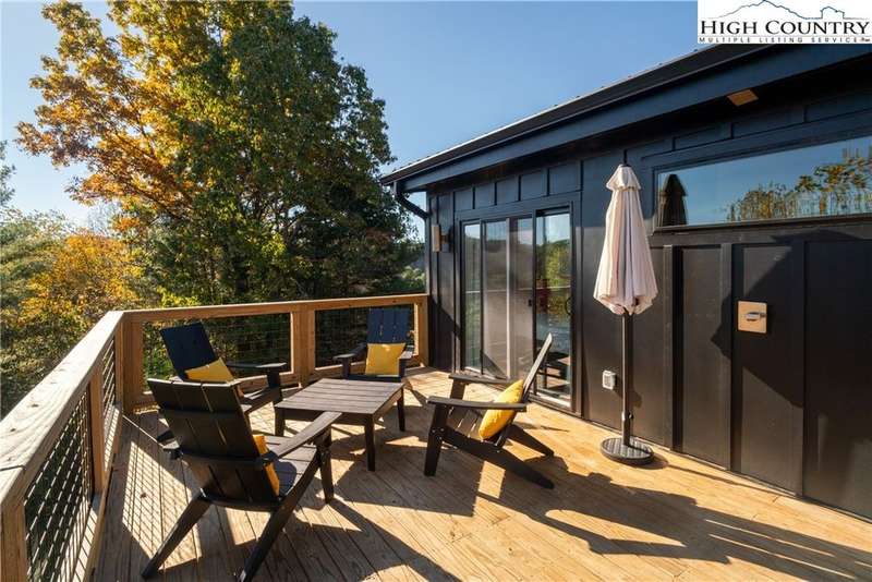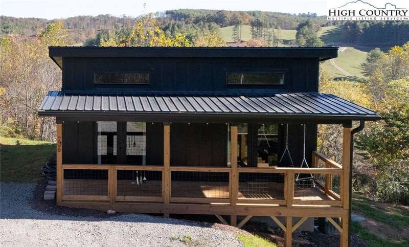 This modern mountain home delivers on maximizing light and views with large windows and vaulted ceilings throughout. Completed in 2025, the modern decor creates a sense of calm and allows you to focus on relaxation. Enjoy the views from both inside the home and outside on the 300 sq ft deck overlooking rolling mountains and long range peaks in the distance. The front porch is a great spot for sunsets and the adjacent fire pit area with Adirondack chairs is a great place for connecting with friends and family while roasting marshmallows and star gazing. The home features an open concept living room with dining and gourmet kitchen all with vaulted ceilings. The kitchen has expansive cabinet space, GE stainless appliances, and quartz countertops. The two equal sized bedrooms feature nice size closets and sliding doors to access the deck. The bathroom is sleek and modern with quartz countertops and porcelain tile floors and shower. The home is fully furnished and comes complete with a fully stocked kitchen and bed and bath linens. Short term rentals are allowed and the home is currently on AirBNB. The New River is within walking distance and is well known for its multiple recreation opportunities including kayaking, tubing, fishing, and more.