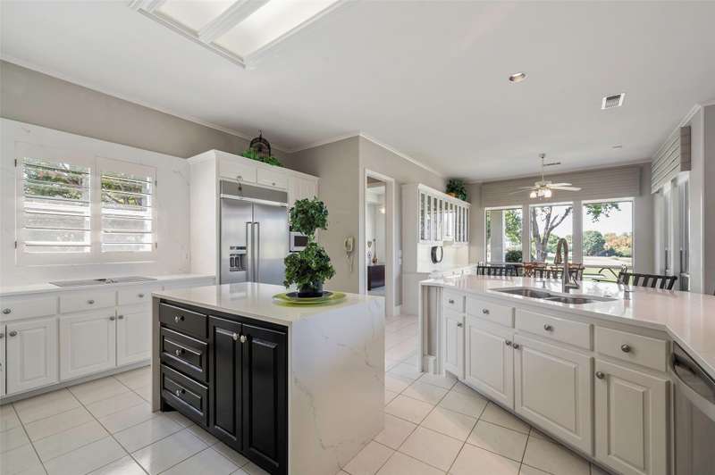 Indulge in a life of luxury and leisure at this stunning one-story home, perfectly positioned on a prime corner lot overlooking the first hole of The Clubs of Prestonwood - The Hills golf course. Imagine stepping outside your door onto the green or enjoying a peaceful stroll to the park directly across the street. This home is designed for seamless indoor-outdoor living and entertaining. Inside, you'll be greeted by an abundance of natural light spilling in through a wall of windows. The main living area is a showstopper, featuring vaulted ceilings and a fireplace, with views of the golf course from every angle. The chef's kitchen is a masterpiece of design and function, boasting a waterfall island, quartz countertops, and high-end stainless steel appliances, all while opening up to the living space so you're never far from the action. The primary suite is your private sanctuary, complete with a cozy sitting area and incredible golf course views. The luxurious primary bath is an experience in itself, with a hydrotub for soaking away the day and a spacious walk-in closet. Secondary bedrooms offer a private escape with ensuite baths and walk-in closets. Step outside onto your covered patio and take in the serene views of the course and driving rangethe perfect spot for morning coffee or an evening cocktail. With a dedicated golf cart path, a spacious utility room, and a bonus room for hobbies, this home is built for a lifestyle of ease and enjoyment. Located in the highly desirable Indian Creek community, you're just minutes from high-end retail, fabulous dining, and the natural beauty of the Arbor Hills Nature Preserve. This is more than a home; its your personal retreat in the heart of Plano ISD.