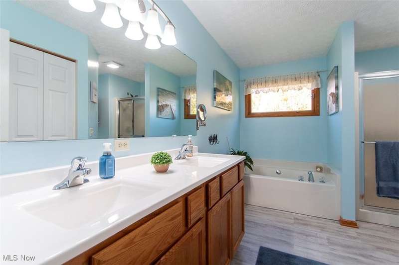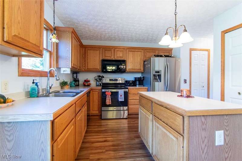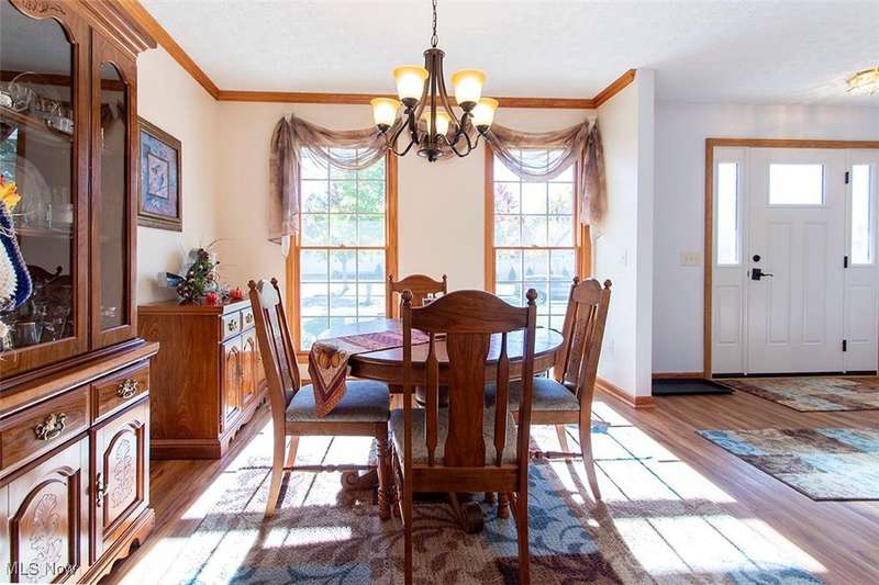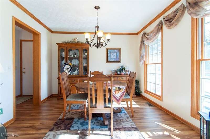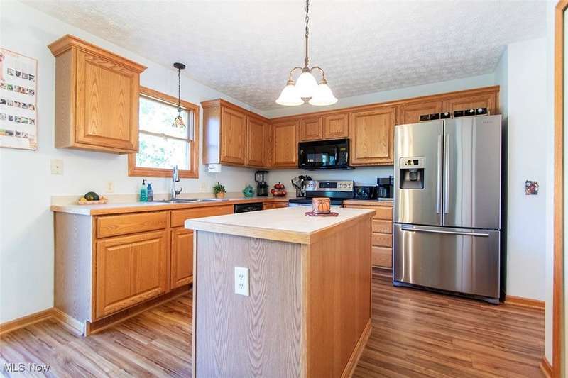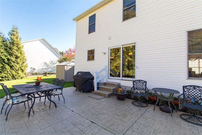Beautifully maintained 4-bedroom Colonial located in the heart of Medina! This move-in-ready home features stunning LVT flooring (2021) throughout the first floor, an inviting eat-in kitchen with a center island and stainless steel appliances, a formal dining room, and a spacious living room. The cozy family room with a gas fireplace provides the perfect spot to relax and unwind. Upstairs offers four comfortable bedrooms with newer carpeting (9/ 2025), including a primary suite complete with an attached bath (double sinks replaced 10/25) and a walk-in closet. The finished lower level adds a large recreation room and ample unfinished space for storage. Step outside to your private backyard oasis?this deep lot backs to trees, a pond, and a natural habitat filled with wildlife. Enjoy the peaceful setting from your back patio featuring a goldfish pond, perennials, and a raised garden bed?ideal for outdoor entertaining or quiet evenings. Additional highlights include a two-car attached garage, storage shed, and numerous updates: roof (2020), front siding (2023), furnace (2023), A/C (2018), hot water tank (2020), sump pump (2020), front door (2021), and freshly painted first floor (10/25). Don't miss the chance to make this exceptional Medina home yours?call today for your private showing!