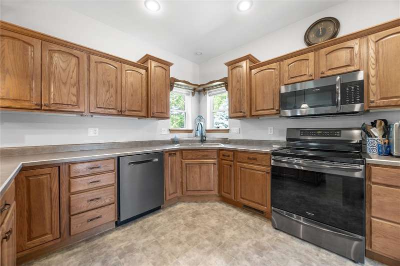 Spacious 5-Bed, 3.5-Bath Two-Story with Screen Porch & Green-Space Views. Step into a bright, open foyer featuring rich wood floors that flow into the formal dining. The first floor family room includes a cozy gas fireplace—perfect for gatherings. A first-floor office offers a quiet workspace or formal living room. The large kitchen impresses with newer Samsung black stainless appliances (2019), ideal for home-cooked meals. The first floor laundry room ensures daily convenience. Upstairs, 3 bedrooms—including a spacious primary suite—and 2 bedrooms and a 2nd bath provide comfort and flexibility. The daylight-lit, finished lower level adds versatile living or entertainment space. Step outside to a private backyard backing to lush green space owned by Solon Care Center. Entertain with ease on the spacious screen porch or store tools and toys in the outdoor shed.