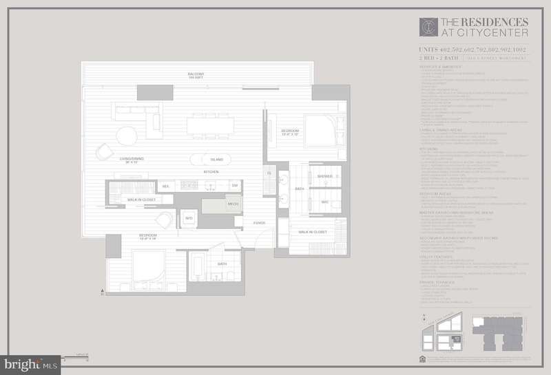 Fantastic New Price!! Welcome to sophisticated urban living at The Residences at City Center! This exquisite 2-bedroom, 2-bathroom condo showcases a modern, open layout designed by the esteemed architecture firm Foster+Partners. Thoughtfully crafted with high-quality, custom finishes and eco-friendly materials, this residence combines luxury and practicality in a prime, central DC location. Expansive windows invite natural light, while private outdoor space offers a serene retreat in the citys heart. Located in one of Washington, D.C.'s most sought-after addresses, The Residences at City Center offer amenities galore and top notch concierge services. Two parking spaces convey.