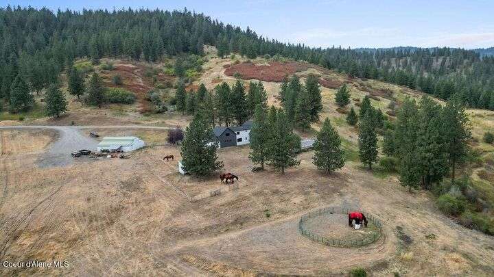State-of-the-Art Dog Breeding Facility W/Living Quarters & Custom Home on Horse Property. Total of Two Homes. Total 56 acres featuring a luxury passive home w/dog breeding facility w/attached luxury apartment. A second home is ready for your finishing touches. Approx 60% finished. Main building is perfect for dog breeding, rescue, or rehab - includes air filtration, epoxy floors, interior suites, & secure covered play areas. Upper level offers food prep/storage, 2 offices, cage banks, indoor/outdoor yards, & turfed paddocks. The lower level includes a beautifully finished apartment w/upscale details. Equestrian potential with sapce to ride, plus direct access to 1,100 acres of conservation land at Antoine Peak - hike, ride, and explore right from your doorstep. Each structure is thoughtfully palced to maximize 360 degree views. Incredible opportunity for dog lovers, trainers, or anyone seeking a private retreat w/room to grow. Live, work & play surrounded by nature. Bring your vision!