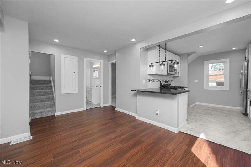 Welcome to this beautifully updated 3 bedroom, 2 full bath Cape Cod home that combines timeless character with modern comfort. This property offers a versatile layout designed for today's lifestyle. Step inside to find a bright and open living area, freshly renovated with new paint, flooring, recessed lighting and an updated fireplace and mantle! The kitchen boasts new flooring, cabinetry, quartz countertops, new recessed light fixtures and stainless steel appliances, making it perfect for both everyday living and entertaining. Upstairs, you'll find 2 updated generously sized bedrooms with ample closet space including an owner's suite with a private bathroom and shower! Outside, enjoy a private backyard with room for relaxation or gatherings and a detached 2 car garage. Your full basement has also been repainted and has new glass block windows installed! Conveniently located near shopping, dining, parks, and major commuter routes, this home offers the perfect balance of charm and functionality. Your new home has completely been repainted with all new flooring and light fixtures. You also have all new windows, new water heater and a new A/C unit! All appliances stay, so there is nothing for you to do, but move in!