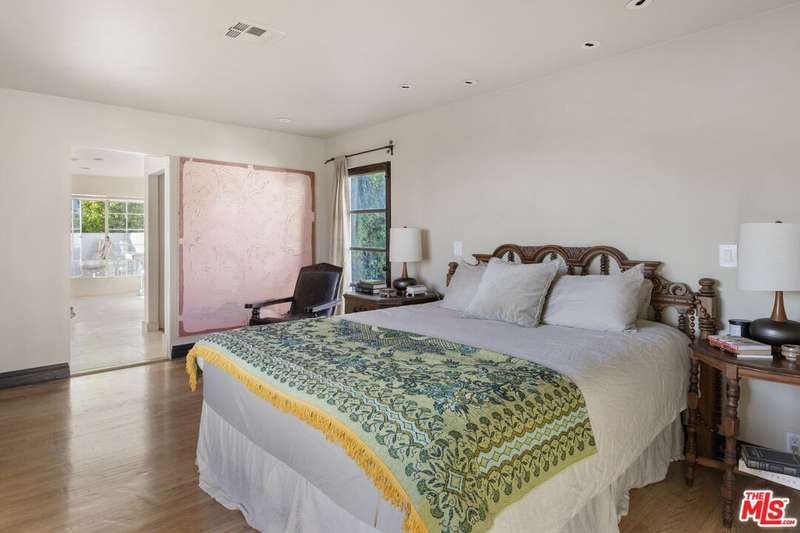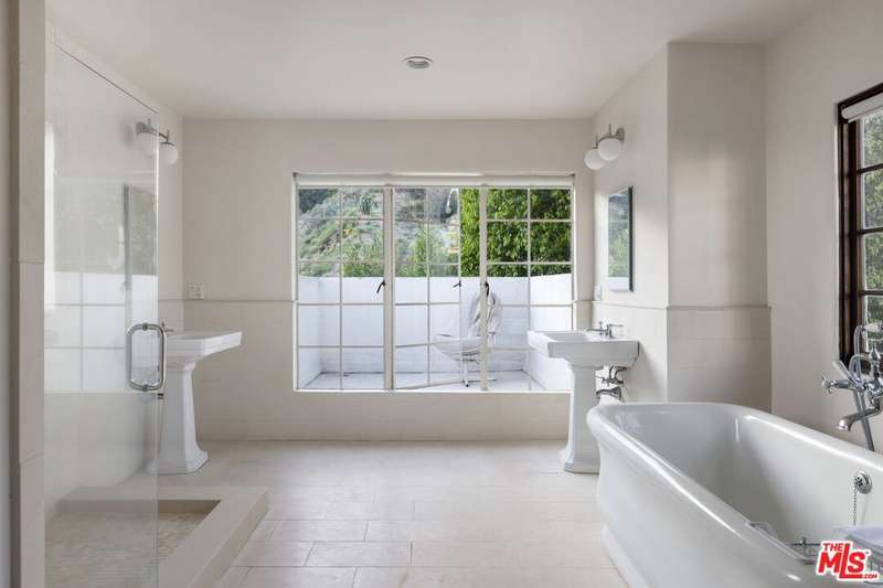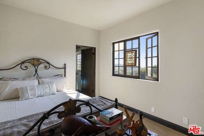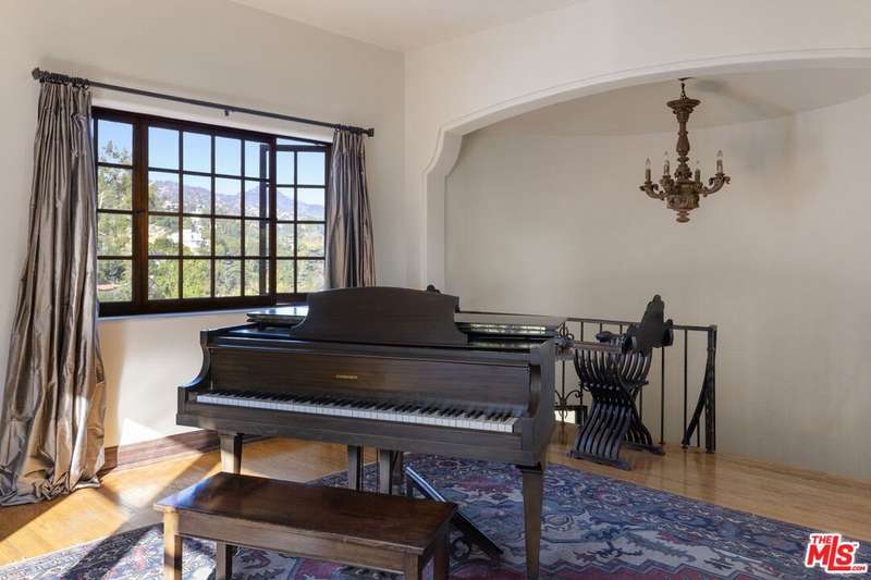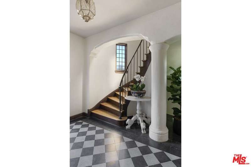 This gated circa 1926 Spanish Colonial Revival home with a rich historical pedigree, is one of Hollywoodland's earliest and most distinctive houses. Designed by architect Elmer Grey (known for the Beverly Hills hotel and the Huntington Art Gallery), the property rises from historic stone walls to a commanding Beachwood Canyon promontory with spellbinding views of major landmarks - Hollywood Sign, Griffith Observatory and L.A. skyline to the ocean, in a neighborhood synonymous with the golden age of cinema and magical architecture. Notable features of the 5 bedrooms, 4.5 bathrooms property include a formal entry with original terrazzo floor and a graceful, curved staircase; well-preserved Malibu tiles throughout, vintage light fixtures and windows, and multiple patios, with a layout that harmoniously balances formal old world elegance and comfortable contemporary living. The main level has a spacious family room opening to a peaceful romantic courtyard with a wood-burning fireplace and a separate dining alcove; a formal dining room; a large kitchen with high end appliances and custom cabinetry; 3 perfectly positioned bedrooms; 2 baths and a classic powder room. Upstairs features a grand scale living room with coved ceilings and a carved stone wood-burning fireplace, opening onto a sunny patio; an exquisite original chapel/library with a 1920s Della Robbia wall fountain, original stained-glass windows and walls of built-in bookcases. The well-appointed primary bedroom with ensuite luxurious bathroom opening to a private balcony, and a walk-in closet, completes this level. Discreetly tucked below, an ideal guest studio with views has a private street entrance, a kitchenette and a bath. The verdant and tranquil setting compliments the home's architecture and embodies the California lifestyle, offering optimum indoor/outdoor entertaining possibilities and expansive views from virtually every room. Glamorous and authentic architectural details have been thoughtfully preserved. This prized location on Belden Drive, near Beachwood Village market, cafes and shops, offers a calm oasis with utmost privacy.
