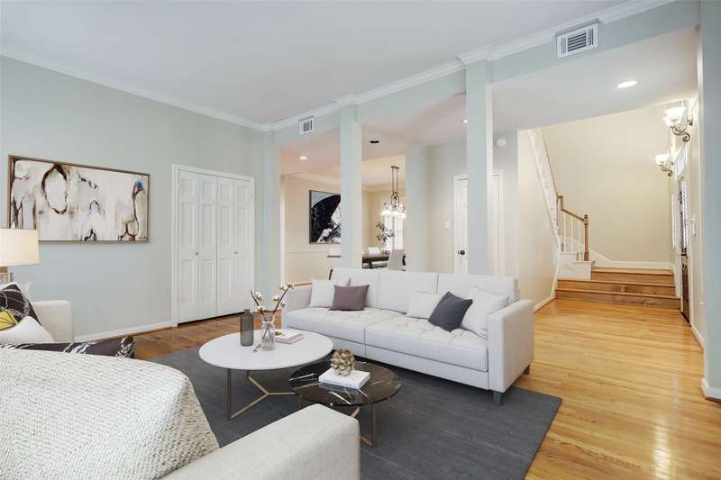 Brick traditional for lease on one of West U’s most coveted streets. This single-family home offers 3-4 beds, 2.5 baths, a spacious yard, gated driveway with 2-car garage, and no carpet! Formal entry with double-height ceiling looks into formal living room with wet bar located across the hall from formal dining room. Kitchen is open to the family room and features double ovens and large granite island with bar seating. Separate utility room with full-size washer/dryer. French doors off family and kitchen open to backyard and covered patio. Upstairs features 2 spacious secondary bedrooms that share a Jack-n-Jill bath. Large primary suite offers en-suite bath, walk-in closet, and balcony with spiral stairs to backyard. Double doors off primary bedroom lead to formal study or nursery. Close to Medical Center, downtown, and located near neighborhood parks, shopping, and dining. All per owner