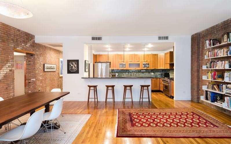 Located in a boutique condo with only 10 units, a key locked elevator delivers you to a welcoming entryway, shared with only one other apartment. The bright, expansive living room features exposed brick throughout and offers views onto lovely, tree-lined Reade Street. The open chef's kitchen is perfect for entertaining and is loaded with counter space, breakfast bar, custom cabinets, dishwasher and a large Viking Stove with hood.