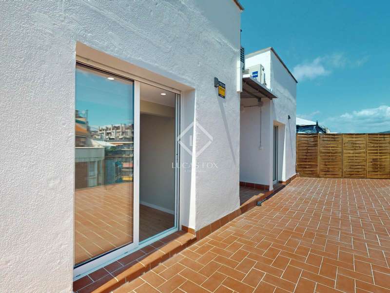 We present this beautiful, fully renovated penthouse, with an interior area of 78 m² and a private terrace of 38 m², located in a building with an elevator on Entença Street. The property is laid out in a very comfortable and functional way. Upon entering, we find a entrance hall that leads to the day area , consisting of a spacious dining room living room with an open kitchen, an open-plan space of over 24 m² with direct access to the terrace. The terrace offers a tranquil atmosphere, ideal for creating a chill-out area, an exterior dining room , or a green space. The night area features three bedrooms: the master bedroom and two additional rooms, perfect as children's bedroom , study , or dressing rooms. The property also has a full bathroom and a guest toilet. The apartment is delivered completely renovated, with new installations, air conditioning and heating ducts, and Bosch appliances integrated into the kitchen.
