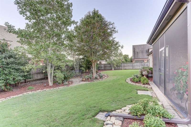 The home is under contract. Meticulously maintained, one-owner home in great Collierville location! This private, professionally landscaped corner lot is one of the best in the subdivision, originally developed by Magnolia homes. This charming, executive home offers a spacious, split-bedroom floorplan featuring three bedrooms downstairs, with hardwood throughout the first floor. You'll love the open floor plan and kitchen featuring best in class Viking appliances, a custom hood vent, plantation shutters, with 12- and 13-foot ceilings in the main living areas. Upstairs you'll find the fourth bedroom and bonus area with Murphy bed that stays, which could be a fifth bedroom. There are two walk-in attic areas plus a three garage, offering tons of storage. The current owners have added a screened-in patio and a gorgeous backyard garden filled with plants and a fountain, watered by a full lawn sprinkler system. Close to the neighborhood pool, West Collierville Middle School, & Johnson Park.