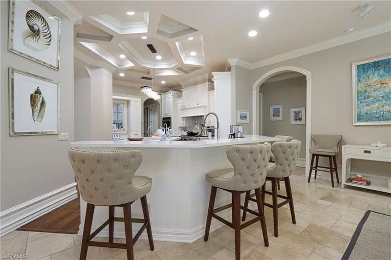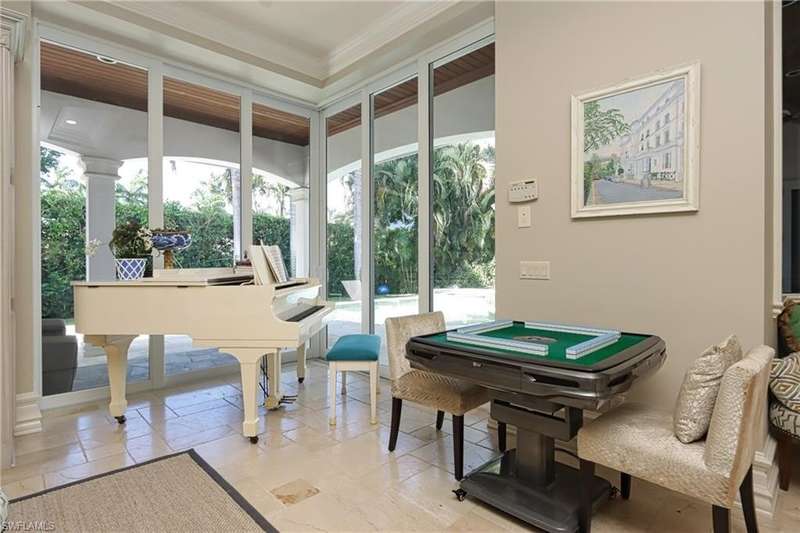 AVAILABLE for 2026 Season! Be the first to enjoy this well-furnished and inventoried, 2-story, 4 bedroom, 4 1/2 bath, private office, with a heated pool/spa in the Moorings. Offering 3500’ for the interior, and a total square footage of 4300’, which includes a spacious, open pool area/ decking, and outdoor kitchen, which is a perfect place for entertaining family and friends. As you enter the house, there is an open living area with 2 comfortable couches, 2 separate chairs, coffee table, fireplace, and a separate bar area for entertaining. The family room has two white, upholstered couches, coffee table, accompany, side tables/lamps, mahjong game table, concert piano, and large TV. The spacious and well-equipped kitchen offers all white cabinetry, quartzite counters, island with blue cabinets, 4 bar stools, Wolf gas range and oven, Subzero refrigerator, dishwasher, microwave, and has a kitchen table and seating for four. The dining room has a beautiful round, walnut table, seating for eight, and chandelier. The master suite is on the first floor and has a king size bed, separate seating area, dresser, end tables, TV, and has a private bath, offering two vanities, soaking tub, and walk-in shower. The second level of this residence offers a private office, three guest “en suite“ bedrooms, king-size beds, private baths, and an outdoor balcony for your guests to enjoy. The spacious outdoor lanai has a heated pool and spa, dining table for eight, bar area with three stools, two comfortable couches, fireplace, chaise lounges, and an outdoor kitchen with gas grill, and refrigerator. This is the perfect location and so close to the beach, shopping, restaurants, and many other amenities. Heading north, you are a bike ride to the Venetian Village in Park Shore, which has shops, restaurants, and galleries, and a short drive to the Waterside shopping area to enjoy their shops/restaurants. Heading south, you are a short drive to Olde Naples’ Fifth Avenue shopping and dining area as well as the Third Street shopping and dining area. Your family and friends will enjoy Naples’ beautiful, white sandy beaches.
