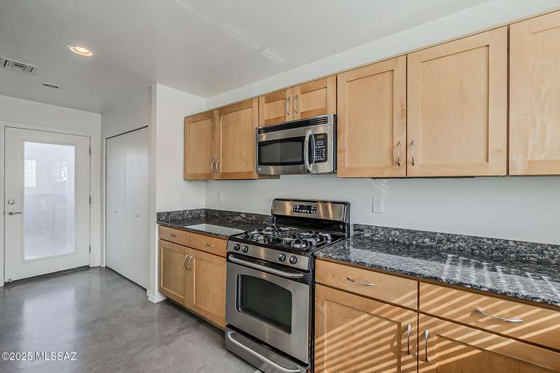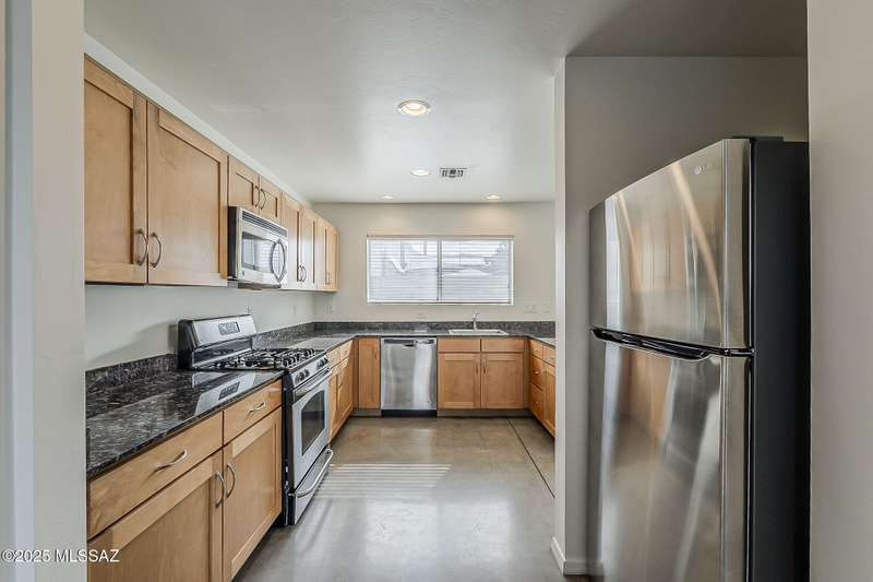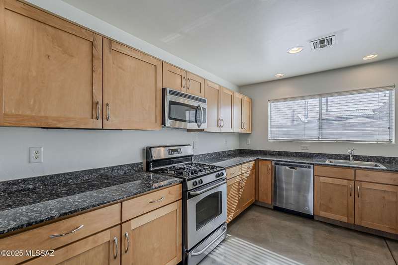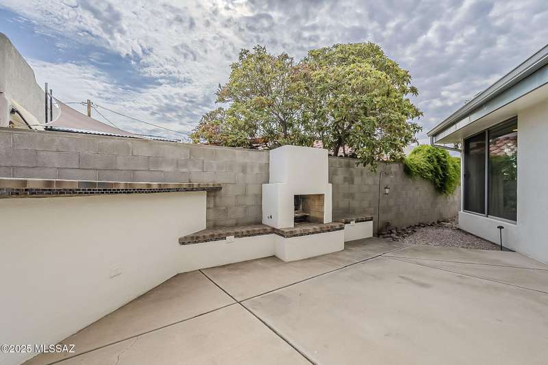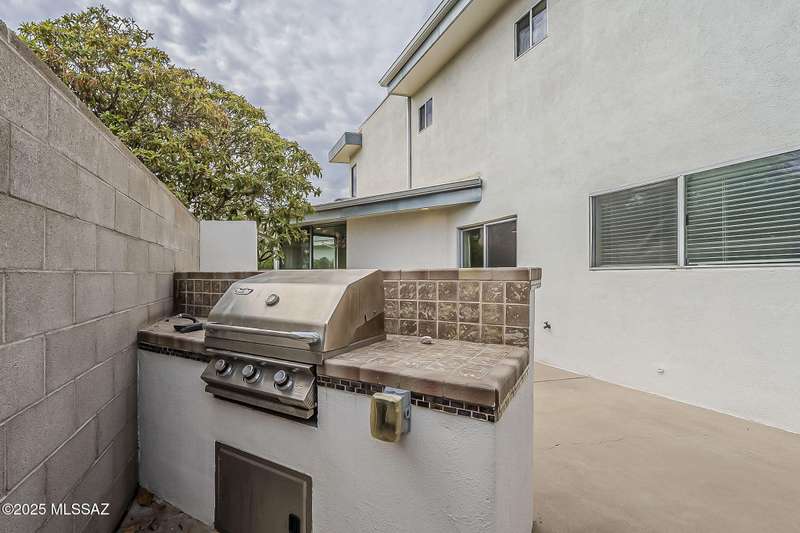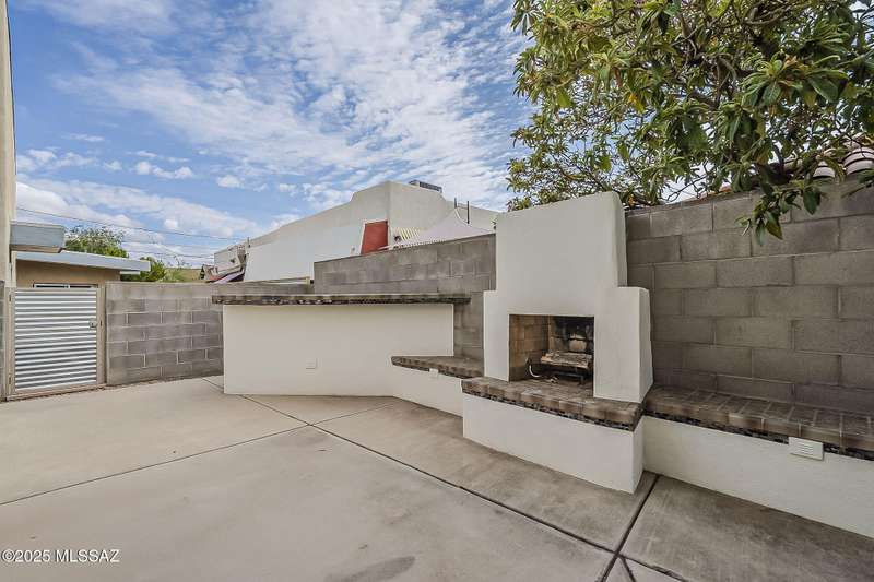 Easy living in Sam Hughes, just steps from the University of Arizona. Built in 2007, this 3-bedroom, 3-bath home was originally designed for members of Lute Olsen's family. The layout offers an open, modern feel with each bedroom featuring its own en suite bath for comfort and privacy. The spacious living room flows seamlessly into the kitchen, creating a welcoming space for connection and entertaining. Generously sized bedrooms add to the home's livability.Outside, enjoy a fireplace and built-in grill area, a gated entrance for privacy, and a low-maintenance garden. Recent updates include fresh exterior paint, Interior paint, new carpet in bedrooms and a new roof coating. A rare opportunity to own a stylish home tied to a piece of U of A history!