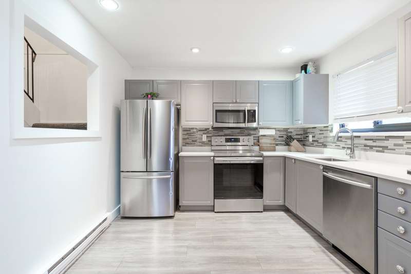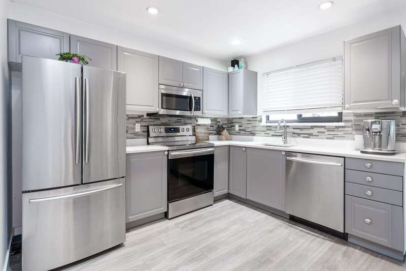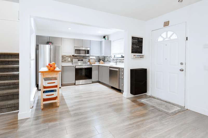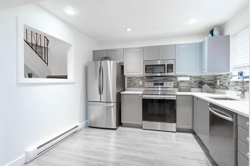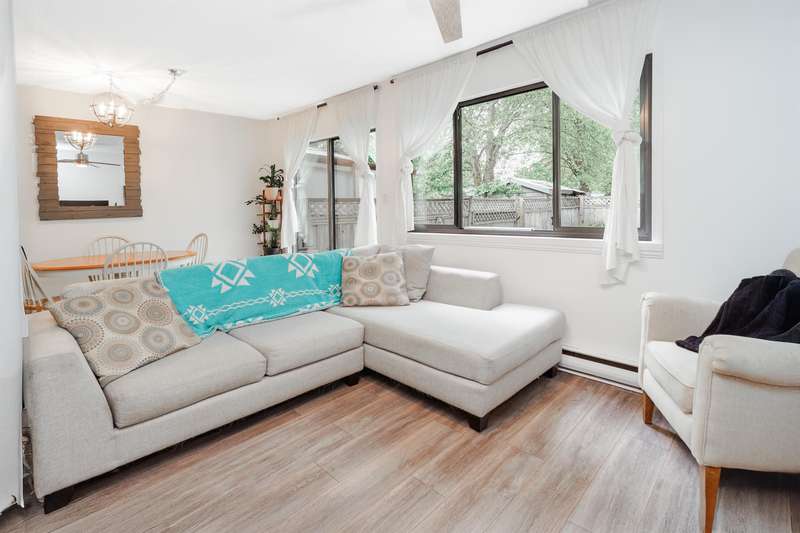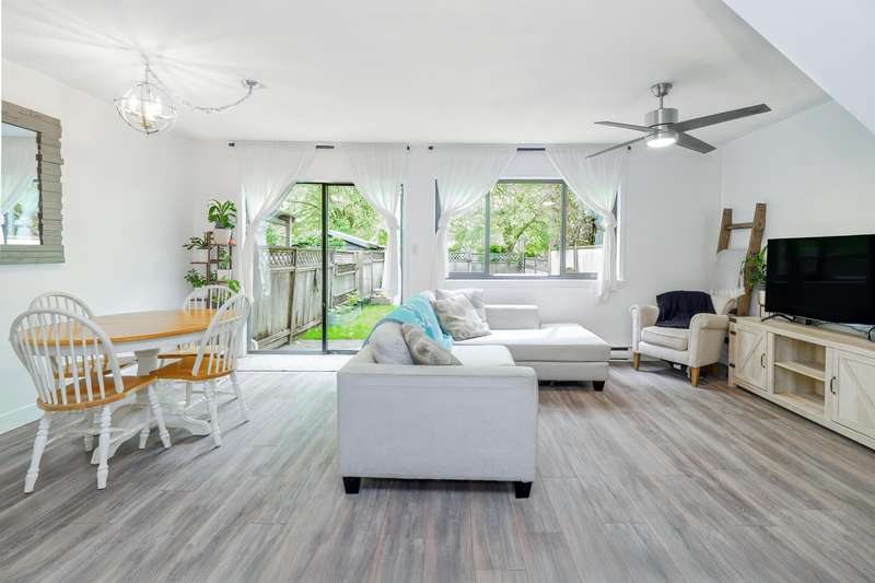 WOODLAND PARK centrally located in the north west side of Maple Ridge, which backs onto a greenbelt area. This three-bedroom 1.5 bath town house with a powder room and open floor plan, is ideal for 1st time buyers that want to get into the market. Nicely renovated with laminate flooring, fresh paint, stainless steel appliances and many more upgrades. Extended living to the rear (and front patio) that lead to fenced yard and backs onto the greenbelt. Sports court area and lots of outdoor open space. Westview Secondary School and Laity View Elementary (Optional French Immersion) are a short walk away. GREAT STARTER HOME READY TO MOVE IN.