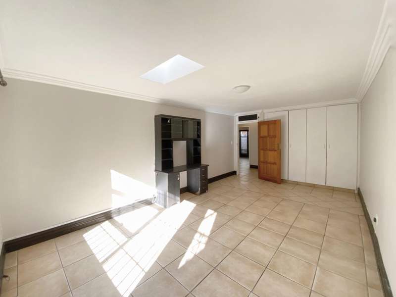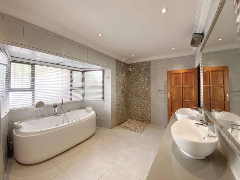 Located in the prestigious suburb of Bedfordview can be found this modern family residence boasting generous volumes throughout and manicured garden with sparkling pool and conversation boma area. With a neutral colour palette creating the polished and warm interior, this home will appeal to the family looking for sophistication and modern charm. One is welcomed through a double volume entrance leading onto the family room and enclosed patio with stackable doors to invite indoor/outdoor entertaining throughout the year. The formal lounge is located adjacent and offers a larger space with a staircase leading to an upstairs private office space or 5th bedroom. This room has a balcony which overlooks the tropical, tranquil surrounds. Complimented with a beechwood eat-in kitchen and quartz tops with chrome finishes and separate dining room, this home also features 4 additional bedrooms, some larger-than-normal and are serviced by 2 bathrooms plus a guest cloakroom. With double automated garaging plus additional covered parking, a borehole and located within an access-controlled boom, one can entertain from every aspect of this unique family home. Inviting offers from R3 700 000.