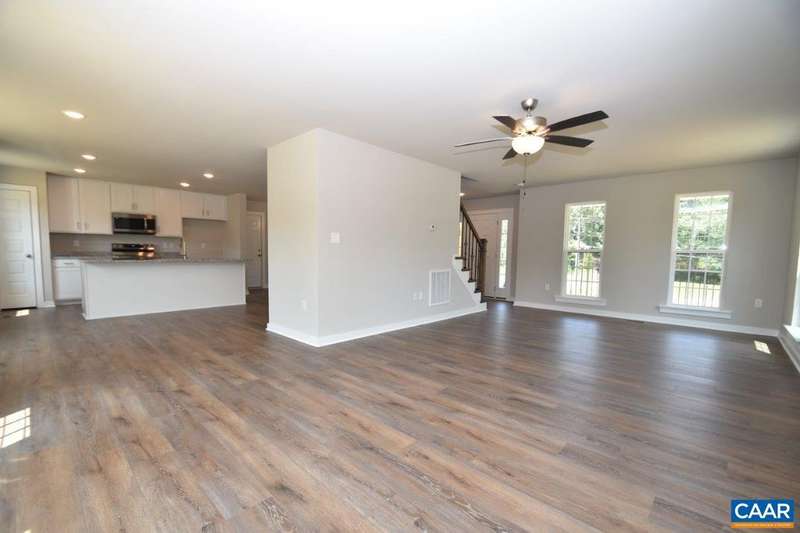 LOT HAS BEEN CLEARED! The Ross model with upgrades galore 5 minutes to Zion Crossroads! The welcoming front porch boasts a French door with 3/4 glass, Iron porch railings, extra LED lights with dimmers, 12" board and bat siding, black gutters and windows, craftsman style shutters, stained columns, dormer, and a side load garage with opener. Interior upgrades include beautiful laminate flooring throughout the entire 1st floor, great room with fireplace, extra windows and LED lights, dining room with craftsman trim package, gourmet kitchen layout with oversized window, stainless appliances, Quartz counters, island with overhang and pendant lights, 36" Tier 2 cabinets and pantry with crown molding, breakfast nook leading to the 10x14 deck. The oak stairs lead you up to the primary with ceiling fan, extra window, leading to the ensuite bath with a transom window over the 5' tile shower, and double bowl vanity. LVP flooring in full baths and wave rectangular sinks. Adult height toilets in primary and half bath, LED overhead lights in 3 bedrooms, pull down attic stairs for storage and convenient laundry finish out the second floor. No WATER or SEWER Bills. Photos are similar to. Spring Completion. Ask about Seller Paid Closing Costs.