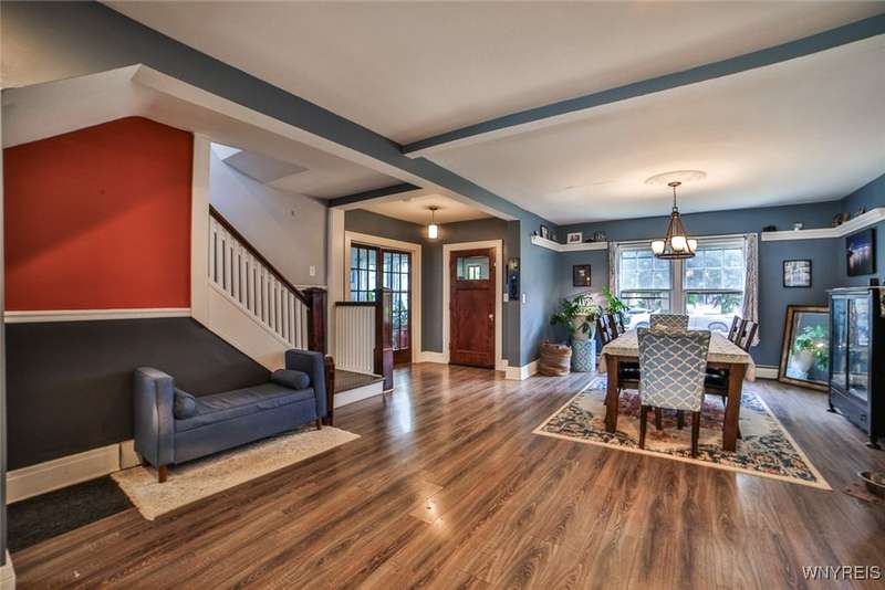 Spectacular Colonial single-family North Buffalo residence with 3 bedrooms, 1.5 baths, offers a blend of historic character and modern updates. 2016 1st floor completely remodeled, offering an open floor plan and a new gas fireplace. 2nd floor Primary bed (24x13) can be a primary or used as a family room and has sliding glass doors that lead to a 2nd floor deck, and a vaulted ceiling with opening to a spacious finished area on 3rd floor. The fully fenced yard and large deck offers space for outdoor activities, while the 2.5-car garage adds convenience, off-street parking, and plenty of storage. Just steps away from the vibrant Hertel Strip, the location provides easy access to shops, restaurants, and local amenities. Don't miss this one!!!