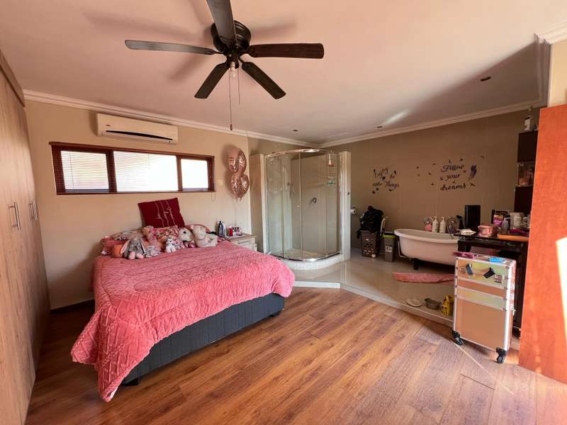 Welcome to your dream home! Situated on a generous 1232 sqm stand, this stunning 4-bedroom, 3-bathroom property offers extended scenic views from multiple balconies off the bedrooms and living areas. Inside, the lounge is a comfortable retreat with sleek laminate flooring and air conditioning. The spacious dining room is perfect for family gatherings and entertaining guests. The modern kitchen is a chef's delight, featuring granite countertops, an island workspace, a prep bowl, a gas and electric hob, and ample cupboards for all your storage needs. Each bedroom is generously sized and equipped with ample cupboard space. The main bedroom boasts an ensuite bathroom, providing a private and luxurious sanctuary. Step outside to find double garages and a carport that accommodates up to two vehicles, ensuring plenty of parking space. The established garden is a tranquil oasis, complemented by a sparkling swimming pool—perfect for relaxing on warm days. Additionally, the property includes a flatlet, ideal for guests or as an income-generating opportunity. Don't miss out on this exceptional property that combines luxurious living with breathtaking views and extensive amenities. Contact us today to schedule a viewing!