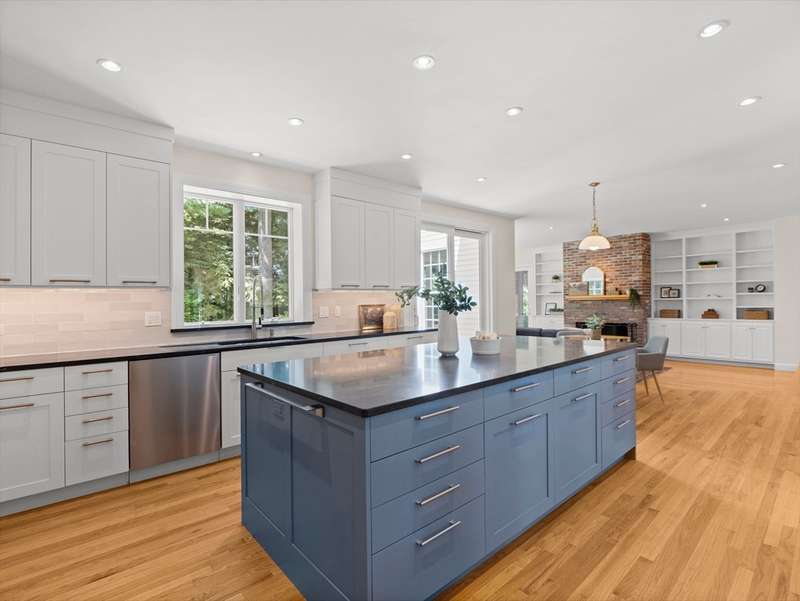 Located in the sought after Brick Shawsheen neighborhood, this home beautifully combines comfort, elegance, and practicality. At its center is a fully UPDATED KITCHEN, complete with GRANITE countertops, a spacious center island, premium Miele appliances, and a Sub-Zero refrigerator, perfect for everyday living and effortless entertaining. Just off the kitchen, two inviting living rooms await, each featuring its own wood-burning fireplace, ideal for cozy evenings or hosting friends and family. Offering three levels of versatile living space, the home includes dedicated office space & plenty of room for both work and leisure. The second floor shines with BRAND NEW HARDWOOD floors, while the third floor is finished with BRAND NEW PLUSH CARPETING, blending sophistication with comfort. Recent improvements, such as a newer roof, furnaces, and hot water heater, provide lasting peace of mind. Completing the property is a gorgeous lot, generous three car garage with abundant storage & parking.
