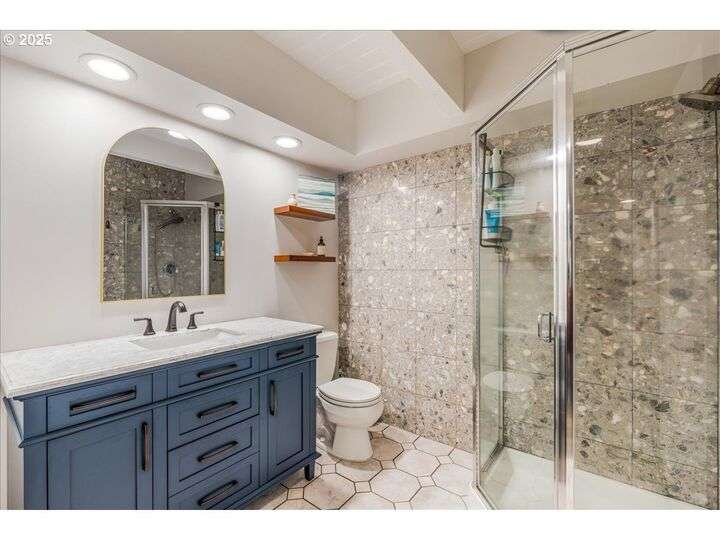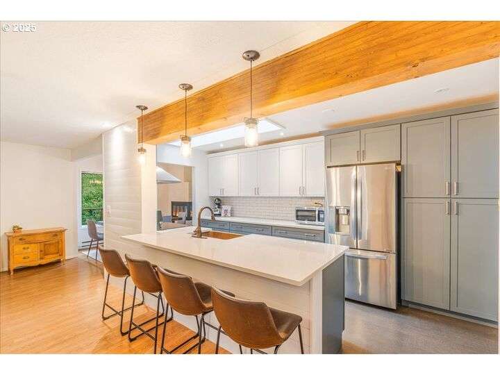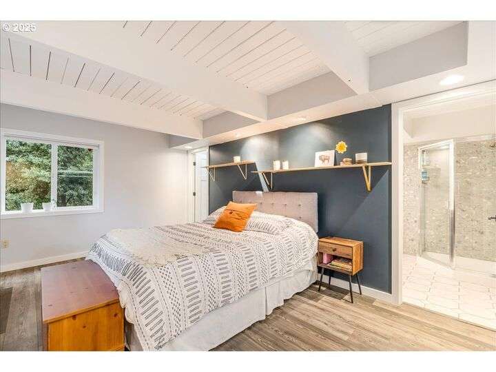 Welcome to a home that stands out for all the right reasons. Tucked away on a private cul-de-sac in the highly sought-after Lake Shore neighborhood, this mid-century daylight ranch offers character, comfort, and thoughtful updates. Step through the sun filled foyer and into a bright main level framed by large picture windows. The remodeled kitchen features a standout copper sink and blends modern style with mid-century warmth. The lower level showcases exposed beams, tongue and groove wood ceilings, creating a cozy and inviting space with new carpet, paint, and insulation. The primary suite and bathroom have been beautifully renovated. The home has been lovingly cared for with updates that blend function and style: a new deck added in 2019, new doors throughout, a freshly painted exterior in summer 2024, and a new septic tank installed in 2020, giving you peace of mind for years to come.