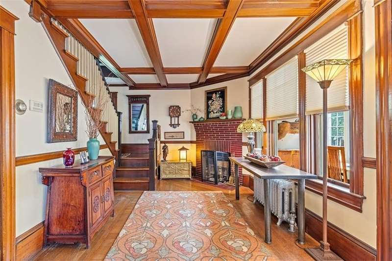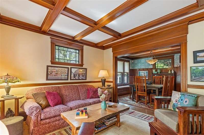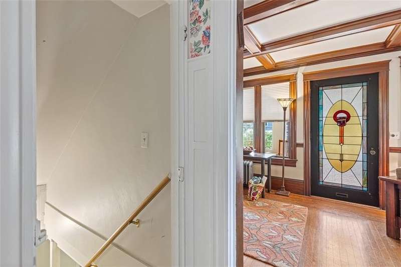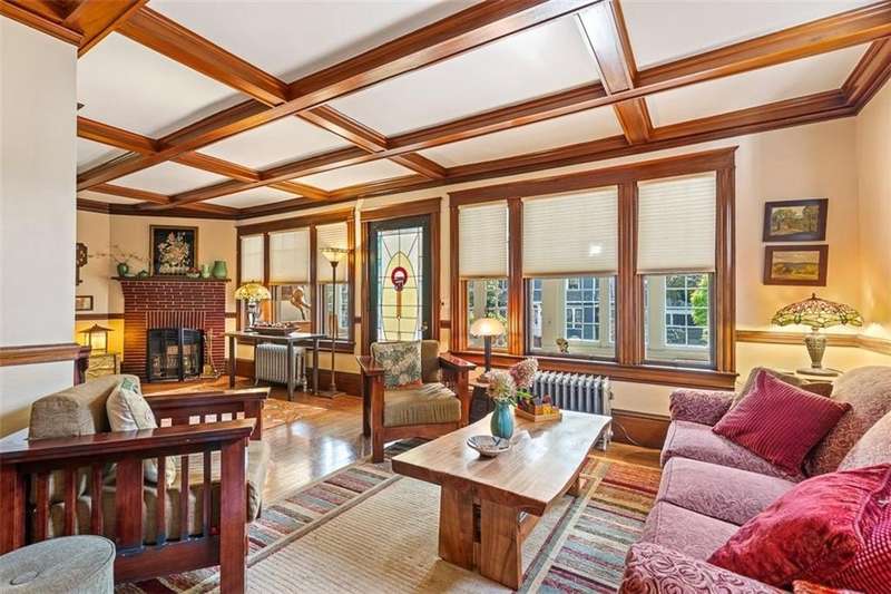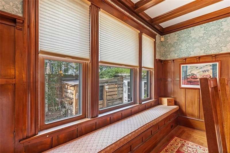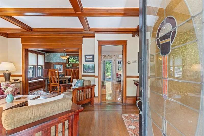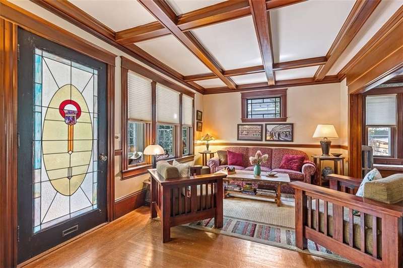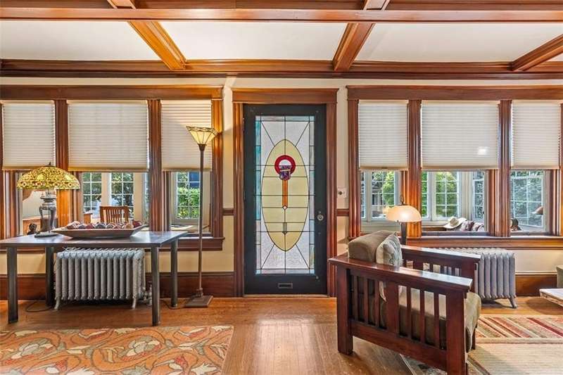 This often-admired Craftsman Bungalow is now available for the first time in a generation. Set on a lovely lot with mature plantings in a coveted Hope Village location. Step into the delightful sunroom and you will instantly feel at home. The rich wood details and divided light windows create the ideal spot to welcome the day. Continue into the living area and marvel at the quartersawn oak floors, beamed ceilings, corner fireplace and raised paneling all harking back to its 1915 roots. The bright, sunny eat in kitchen is open and spacious with tile counters and backsplash and crisp white cabinetry. The adjacent dining room has raised wood paneling and a window seat. The perfect setting for holiday entertaining. A half bath completes this first living level. Upstairs are three spacious bedrooms. The primary has a large walk-in closet and oversized windows. Two additional bedrooms, one with a charming window seat provide ample space for family or guests. A vintage black and white tile bath has been updated for modern living. Down to the finished lower level is a family room, craft room and a second full bath. Out to the show stopping back yard complete with a deck which overlooks the city garden. An outbuilding currently serves as a wood working shop and could easily be an artist studio, she shed or man cave. Just steps to the shops, restaurants and boutiques in Hope Village plus a short stroll to the farmer's market at Lippitt Park make this dreamy Bungalow is a must see.