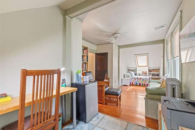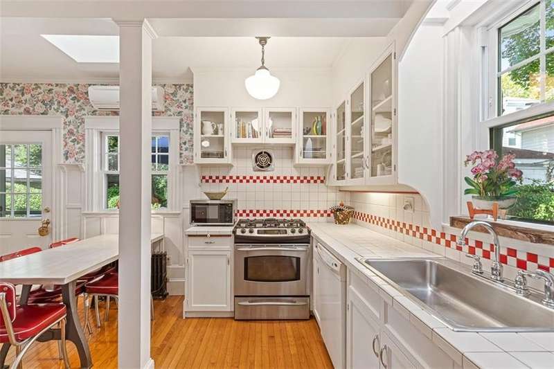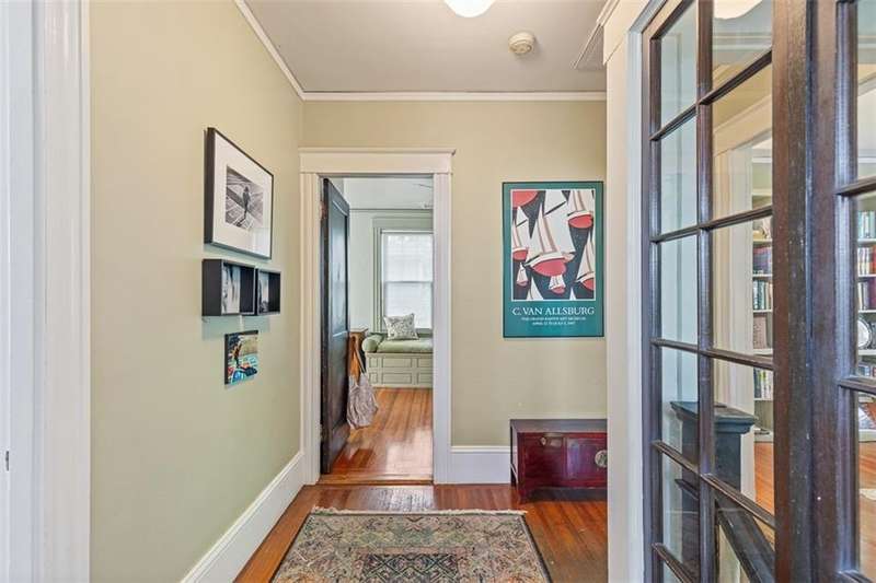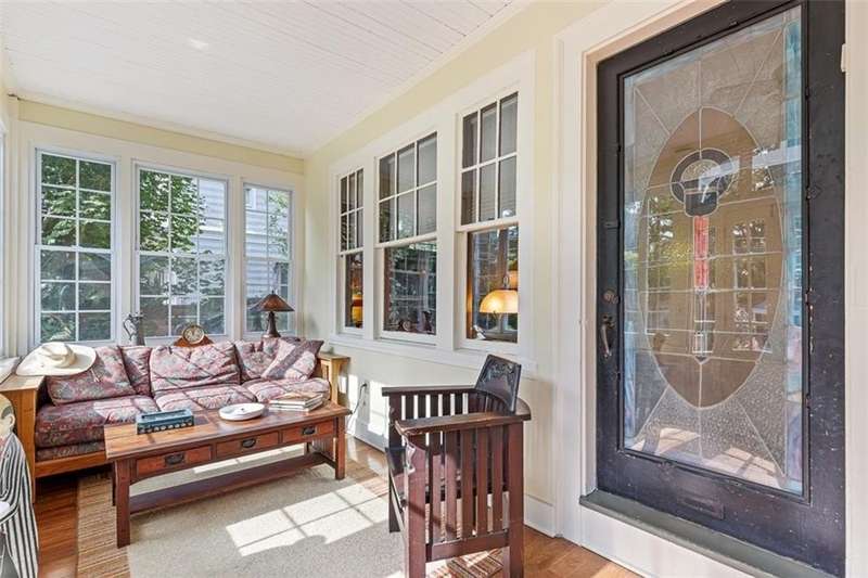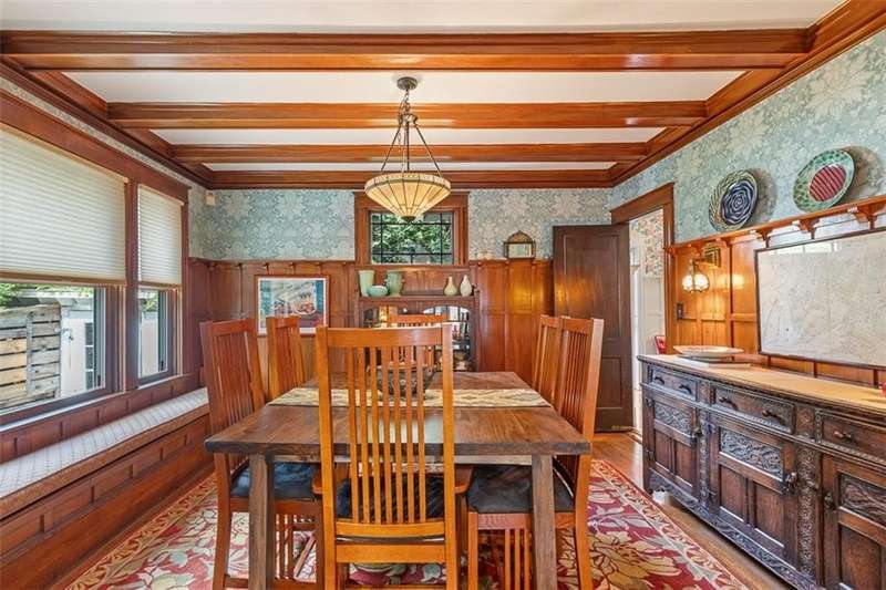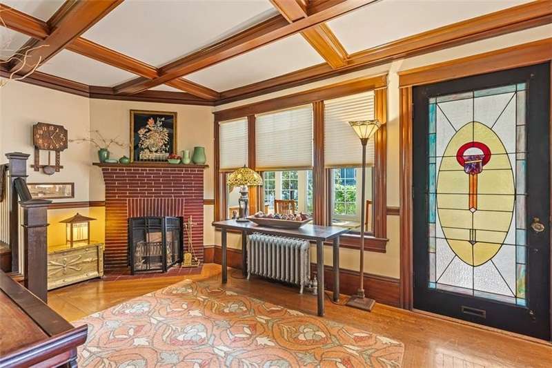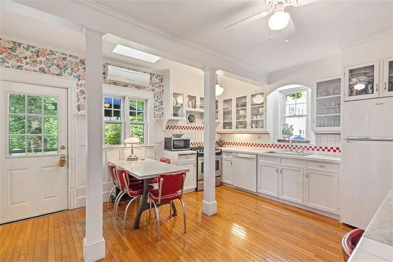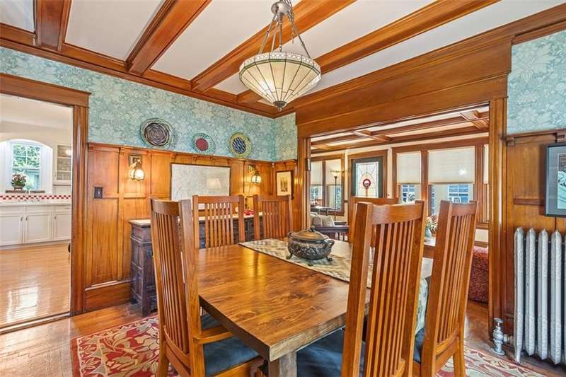 This often-admired Craftsman Bungalow is now available for the first time in a generation. Set on a lovely lot with mature plantings in a coveted Hope Village location. Step into the delightful sunroom and you will instantly feel at home. The rich wood details and divided light windows create the ideal spot to welcome the day. Continue into the living area and marvel at the quartersawn oak floors, beamed ceilings, corner fireplace and raised paneling all harking back to its 1915 roots. The bright, sunny eat in kitchen is open and spacious with tile counters and backsplash and crisp white cabinetry. The adjacent dining room has raised wood paneling and a window seat. The perfect setting for holiday entertaining. A half bath completes this first living level. Upstairs are three spacious bedrooms. The primary has a large walk-in closet and oversized windows. Two additional bedrooms, one with a charming window seat provide ample space for family or guests. A vintage black and white tile bath has been updated for modern living. Down to the finished lower level is a family room, craft room and a second full bath. Out to the show stopping back yard complete with a deck which overlooks the city garden. An outbuilding currently serves as a wood working shop and could easily be an artist studio, she shed or man cave. Just steps to the shops, restaurants and boutiques in Hope Village plus a short stroll to the farmer's market at Lippitt Park make this dreamy Bungalow is a must see.