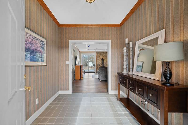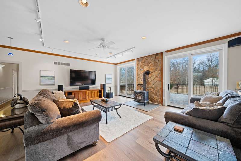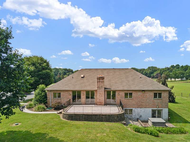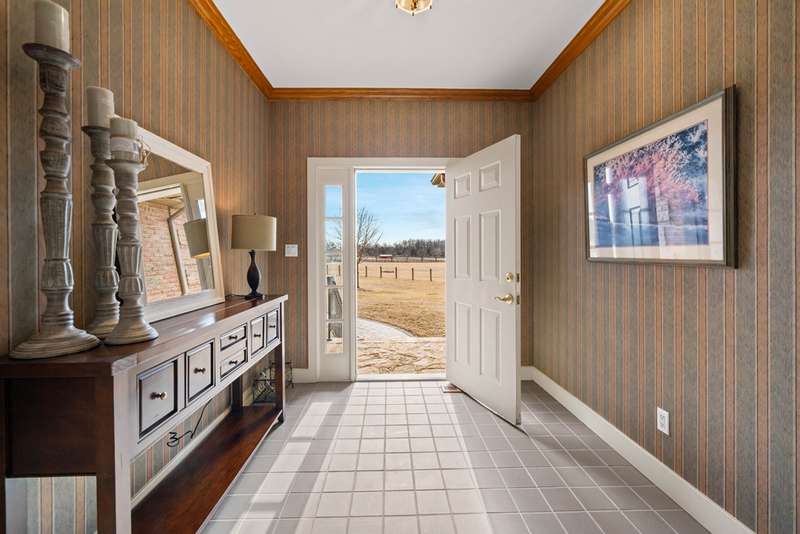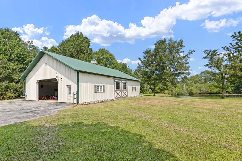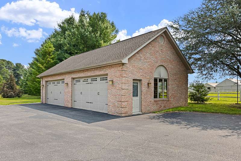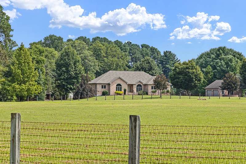 HUGH PRICE REDUCTION!!! .. and property is SUBDIVIDEABLE!!! Welcome to Windmere Farm – a stunning country estate situated on 14.21 acres, recently enhanced with over $135,000 in updates. This custom, all-brick ranch blends comfortable living with casual luxury, offering features that go well beyond the ordinary. As you enter the spacious foyer, your eye is immediately drawn to the family room and the expansive views beyond, visible through two tall sliders leading to the patio and backyard. To the right, the open dining area offers another slider for seamless indoor-outdoor living. The chef’s kitchen is a true showpiece, equipped with: 6-burner Viking gas range with two ovens (one gas, one convection); Sub-Zero refrigerator/freezer; two Bosch dishwashers; under-counter ice maker; and custom hickory cabinetry with soft-close drawers and under-cabinet lighting. Just off the family room is a charming library, featuring custom cherry built-ins and a large arched window. It can be closed off with pocket doors for privacy. Beyond the library, glass French doors open to a large flex room—ideal for a second office, playroom, or studio—which also connects to the kitchen. On the opposite wing, a pocket door leads to the bedroom quarters. The primary suite boasts a triple arched window, a spacious en-suite bath with updated fixtures and lighting, and a large walk-in closet. Two additional bedrooms share a beautifully updated hall bath. The fully finished lower level—with walk-out access to the hot tub - features new LVP flooring, a private office space, and a mini-split system for year-round comfort. Step outside the family room to a large patio with custom wrought iron railings and Cambridge pavers. Across from the kitchen is the four-car, all-brick garage, complete with: tile flooring; EV charging station; wall-mounted vacuum system; gas heat and full insulation. For additional space, a 42' x 60' insulated pole barn with heat, A/C, water, and electric sits nearby. The property also includes: fenced pasture with run-in shed (currently home to Teddi, the llama); backyard cedar woodshed; heated/cooled kennel with auto-fill water station and two garage bays; and 8 water hydrants throughout the property. Recent updates include: roof (5 years old); Marvin Ultimate windows & sliders (new); engineered hardwood flooring; full interior repaint (2024); septic inspection & repairs (2024). Windmere Farm offers peace and quiet, with horses as your neighbors, while being just minutes from restaurants, shops, and all that Middletown has to offer. The home is not visible from the street—showings are by appointment only. Call Renée with any questions.