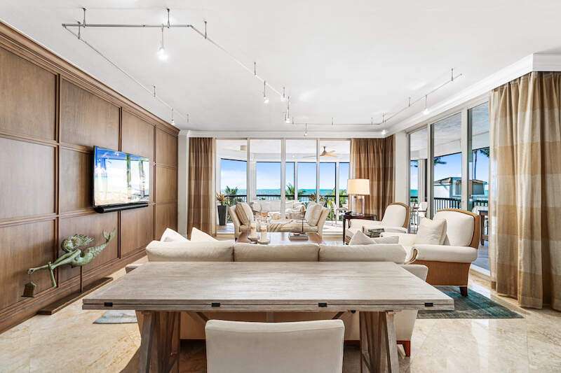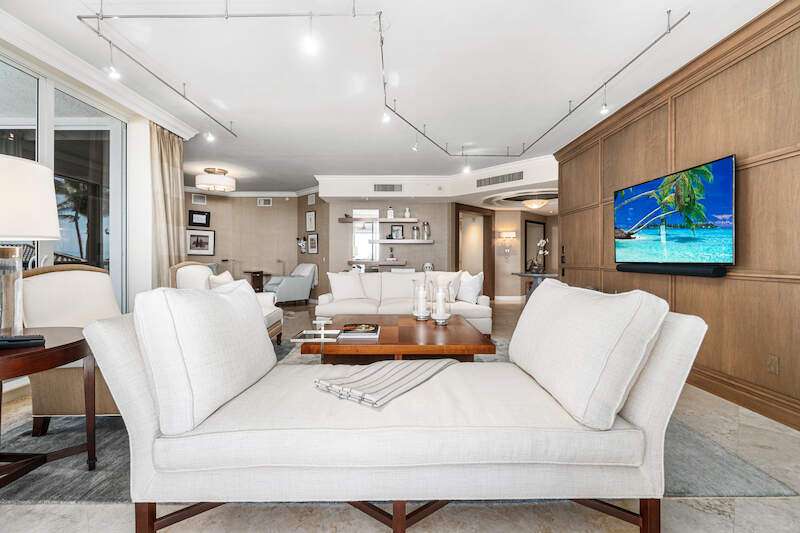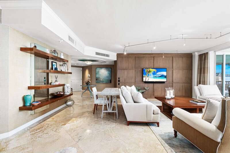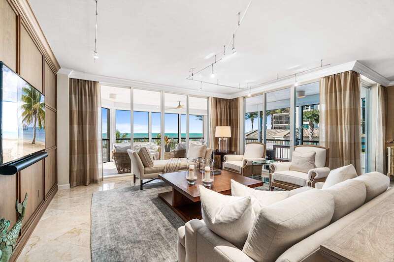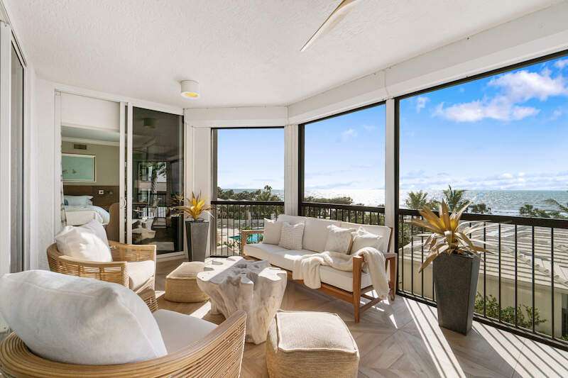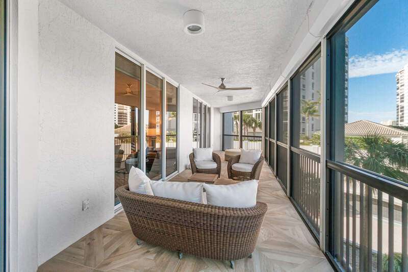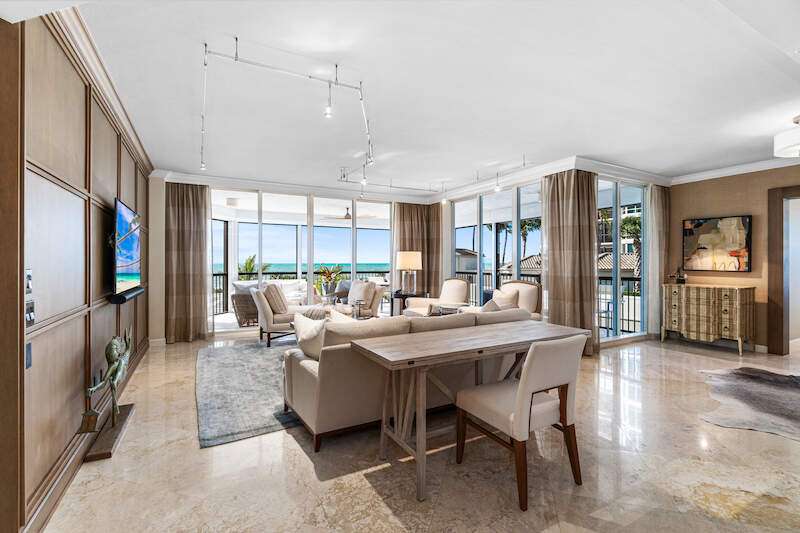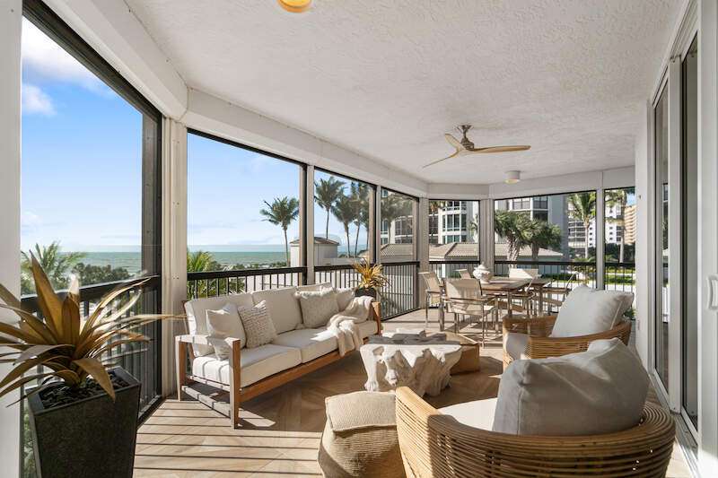 Step into move-in-ready, TURNKEY luxury-just in time for season. This exquisite corner end unit in the coveted '04 stack, known as the most desirable floor plan in the building, offers panoramic perfection and a lifestyle defined by sophistication and ease. From the moment you enter, you're greeted with breathtaking views in every direction. The scene is pure magic, capturing the essence of coastal living at its finest. Upgraded and thoughtfully curated with designer finishes and furniture, this residence exudes timeless elegance. The soft glow of Jerusalem Limestone flooring sets the tone for refined living, while Final Touch custom maple woodwork elevates each space with bespoke craftsmanship and attention to every detail. Every bedroom offers its own ensuite, providing comfort, privacy, and a true retreat for you and your guests. Enjoy your morning coffee as the first light dances across the horizon, then unwind at day's end with a glass of wine as the sun sinks into the Gulf. Every moment here feels effortless and inspiring. Located just steps from the exclusive Bay Colony Beach Club, you'll have access to beachfront chair and umbrella service, fine dining, and all the amenities that make this community so exceptional. Fully furnished, impeccably appointed, and ready for immediate enjoyment-this residence invites you to embrace the season ahead in pure Naples luxury!