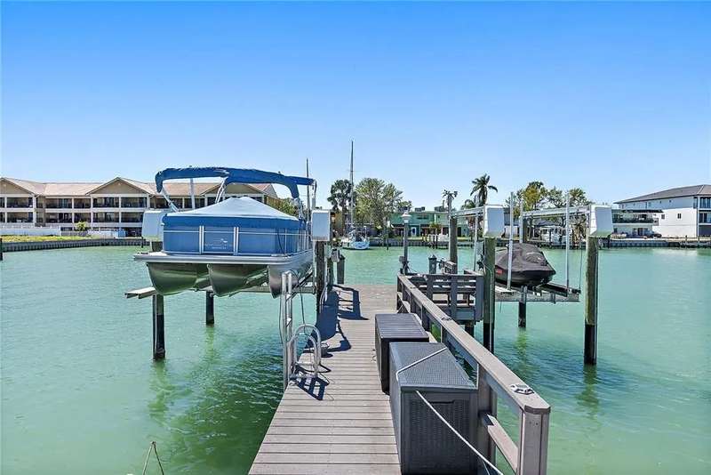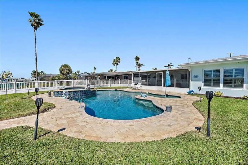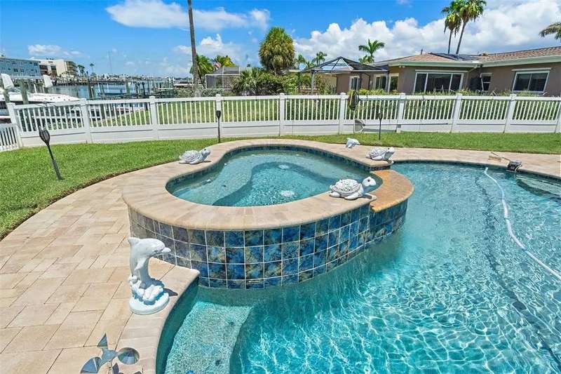 Move-in ready waterfront 3BR/2BA ranch-style pool home on coveted Isle of Capri … Treasure Island, FL … Blending Coastal Charm with immediate boating access to Johns Pass, the Gulf of Mexico, the beloved Johns Pass Sandbar and the Intracoastal Waterway … the classic Florida Lifestyle from day one … long-time family ownership shows pride of ownership from the textured paver driveway to the finishes inside … oversized, vinyl fenced lot including the ~80 ft of reinforced seawall and a distinctive epoxy blue cap … private dock with wrapped pilings, composite decking, lower landing, and two fish-attracting lights … boat lift plus separate wave-runner lift … truly a boater’s dream for offshore fishing, casual waterfront dining or just a quick sunset cruises …Sparkling 16' x 32' free-form PebbleTec pool and spa (newer heavy-duty pump) … steps to a screened 14' x 27' Lanai / Florida room with paver floor, two fans, and “windows-ready” framing … designed for year-round indoor/outdoor living … split bedroom plan for privacy … impact windows and PGT French doors bring light and peace of mind … luxury vinyl plank flooring and a newer A/C system for comfort … PVC plantation shutters (throughout) and crown molding add timeless style …a stained-glass front door welcomes … new interior doors and a cedar hall closet elevate the details …Open, practical layout … large air-conditioned laundry room with abundant cabinetry just off the kitchen … kitchen with nearly new GE Profile Appliances and pull-out drawers for everyday convenience … primary suite plus Bedrooms 2 & 3 feature California Closet organizers … 8-camera security system for easy home monitoring … enjoy morning coffee overlooking the bay … entertain poolside … then motor out to the Johns Pass sandbar to relax or get serious offshore in the Gulf, fishing or diving … If you’re seeking a realistically-priced Treasure Island waterfront home with excellent boating access and the classic Florida style … this just could be the one … Don't delay, HURRY and CALL TODAY, for your private showing!