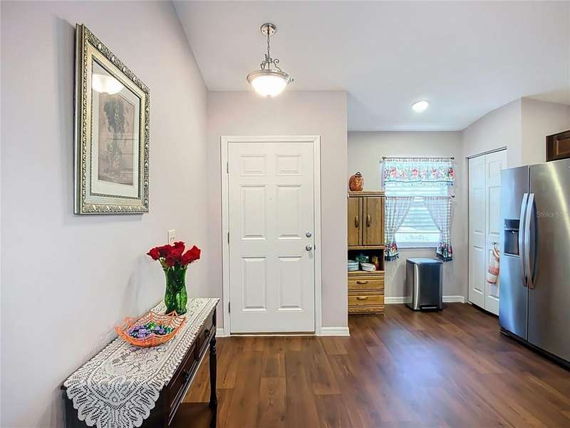 Well-maintained 3 bed, 2 bath home on a pond in Cortez Landings, situated on the highest ground in the neighborhood-no flooding during hurricanes, per homeowner. Open floor plan with vaulted ceilings, luxury vinyl plank flooring, and sun-protective window film. Exterior and interior freshly painted (2023). Upgraded kitchen with tiled backsplash, new dishwasher (2025), range (2025), faucet (2025), refrigerator (2024), and water filtration system. Additional updates include new washer/dryer (2023), upgraded lighting, double-pane windows, and accent-tiled primary shower. One-car garage with storage cabinets plus expanded brick-paved driveway fits 3 additional cars. Brick pavers extend around the side of the home. Large breakfast bar easily seats 4. Secure, resealed shed withstood three hurricanes. Vinyl fence can be modified to restore pond view. Elevated AC with new capacitor (2025) for improved efficiency. No CDD, low HOA dues ($425/annually) , and not in a flood zone!! Curio cabinet in dining room will convey. Being sold As-Is.