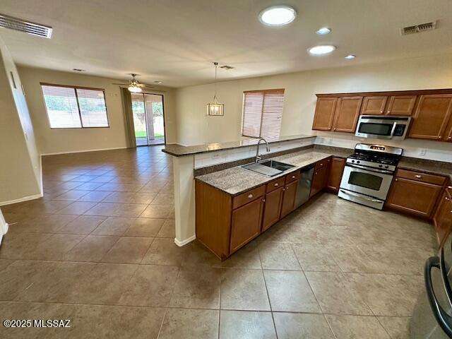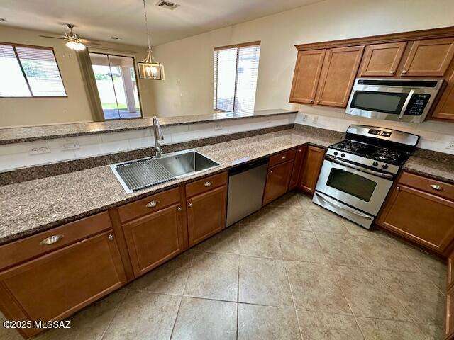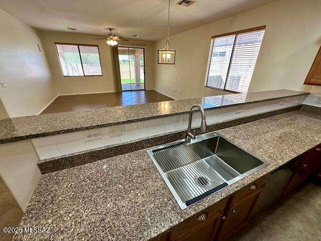 Seller will accept/counter offers between $399,900-$425,000. Beautifully maintained single-story home in Rams Pass, Oro Valley. Popular split-bdrm floorplan w/spacious kitchen featuring ample counters, cabinets w/pull-outs, breakfast bar & open layout overlooking great room--ideal for entertaining. Primary suite offers dual closets, double vanity & step-in shower. Guest bdrms are generously sized w/full guest bath. Additional features: soaring ceilings, tile & warm wood flooring, laundry rm w/gas & electric hookups, ceiling fans, skylights & fresh interior/exterior paint. Low-maintenance backyard w/mountain views perfect for outdoor dining & relaxation.