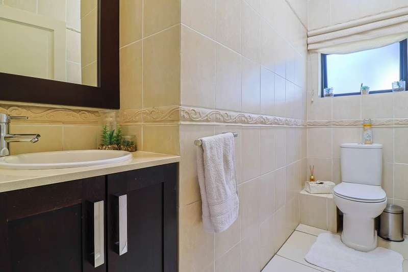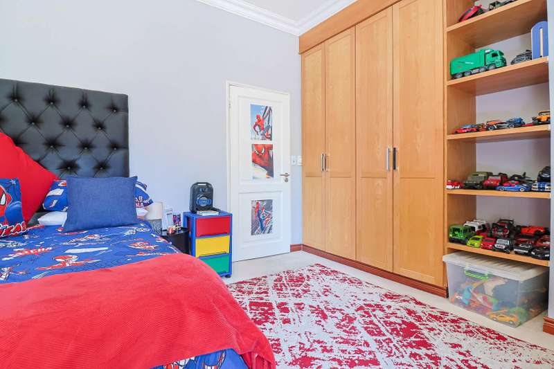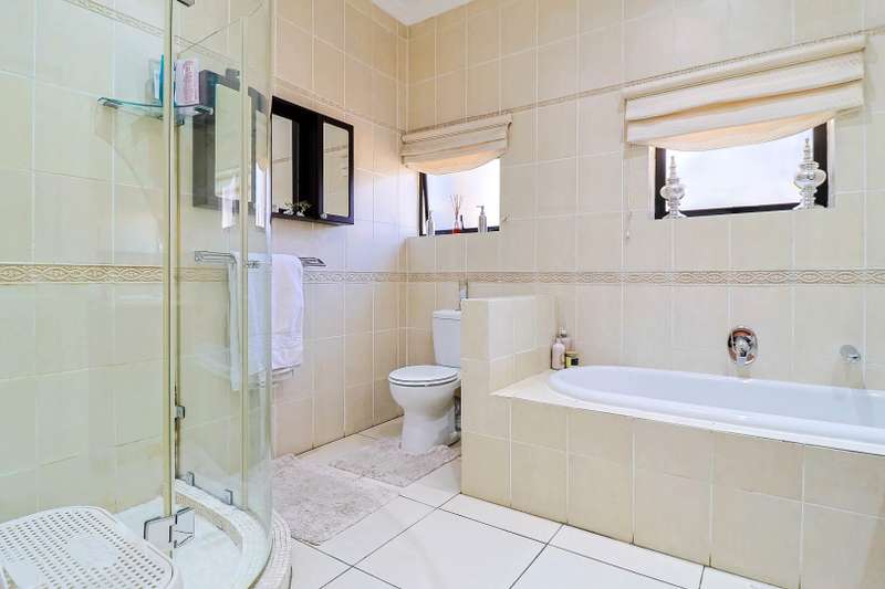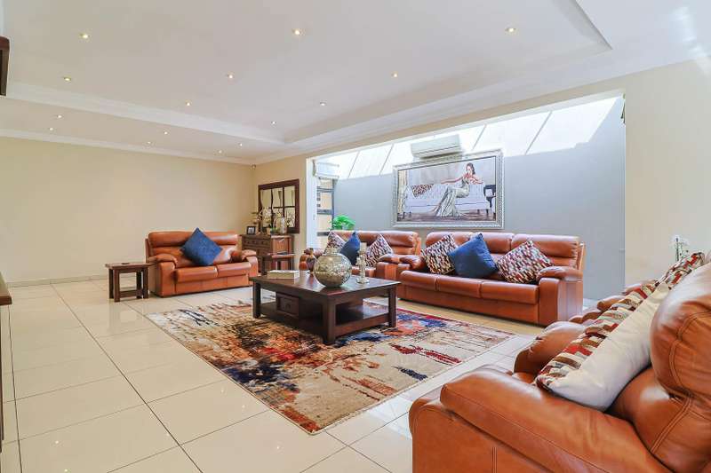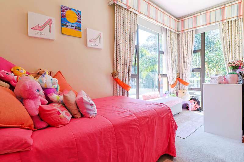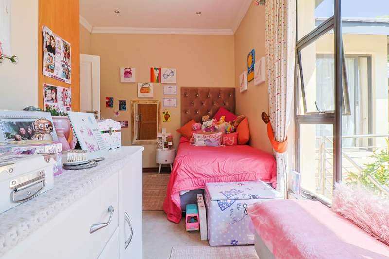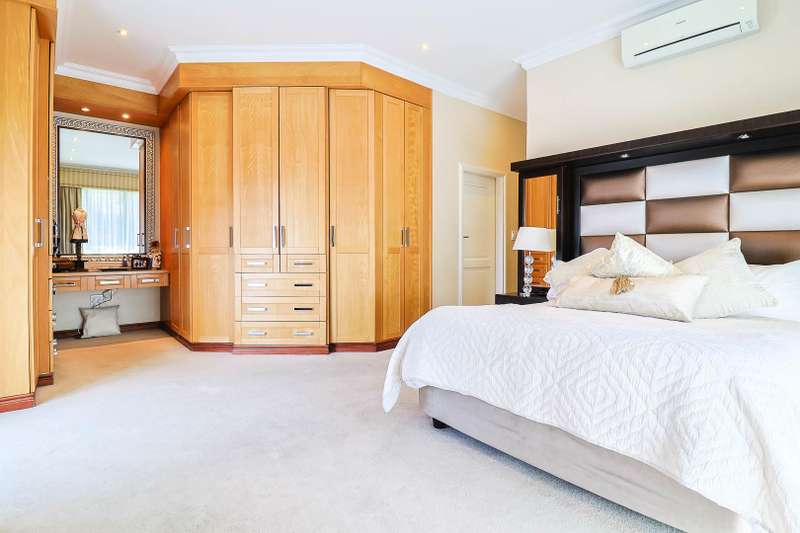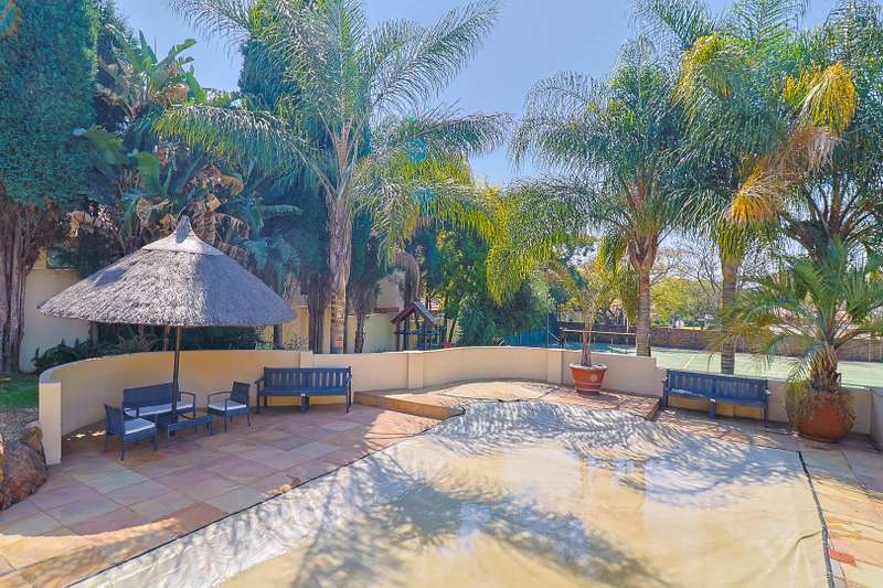 Rarely does a home of this calibre grace the market. Impeccably maintained and designed for refined living, this residence combines timeless elegance with modern sophistication to create a haven of comfort and style. Upon entering, a grand double-volume foyer adorned with stone cladding sets the tone for the home?ÇÖs impressive interiors. Expansive open-plan living spaces flow seamlessly throughout, offering the perfect balance between luxurious family living and elegant entertaining. The formal lounge, complete with air-conditioning and sleek flush-plastered ceilings, opens effortlessly to the dining area ?Çö a sophisticated setting for social gatherings. A separate TV lounge with a cozy fireplace extends to the covered patio, while two contemporary studies provide exceptional work-from-home versatility. An indoor entertainment room with built-in braai and prep bowl overlooks the manicured garden, ensuring effortless year-round hosting. The bespoke designer kitchen is a culinary masterpiece, featuring high-end appliances, an integrated breakfast nook, electric and gas cooktops, and a separate scullery and laundry. Accommodation comprises five beautifully appointed bedrooms, each with access to a private balcony. The luxurious master suite offers a walk-in dressing area and an elegant full en-suite bathroom. Additional bedrooms include two with en-suite bathrooms and a private guest suite. Outdoors, a sparkling heated swimming pool is complemented by a sprawling landscaped garden, complete with a jungle gym and trampoline ?Çö an idyllic playground for children. The lush surrounds feature a fully automated irrigation system and a stylish entertainment lapa. Additional Features: ?Çó Staff accommodation with private bathroom ?Çó 3x 500L JoJo water tanks with irrigation system ?Çó Generator and solar-heated geyser ?Çó Underfloor heating ?Çó Floodlit tennis court ?Çó 3-phase electricity ?Çó Garaging for up to 10 vehicles plus additional parking ?Çó Dedicated storeroom ?Çó High-speed WiFi ?Çó Exceptional estate security Set within the prestigious and secure Alberante Security Estate, this remarkable home offers the ultimate in family luxury, convenience, and peace of mind. A true gem for the discerning buyer seeking space, sophistication, and serenity.