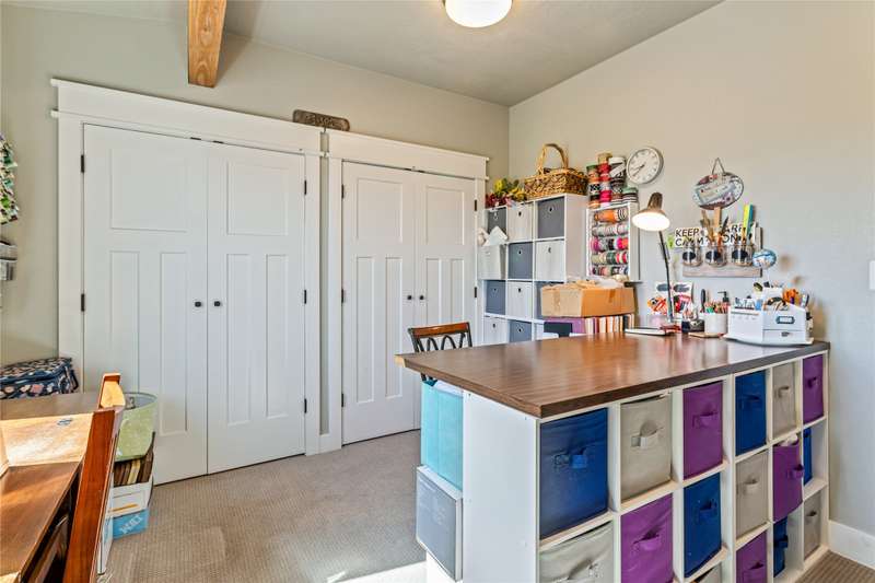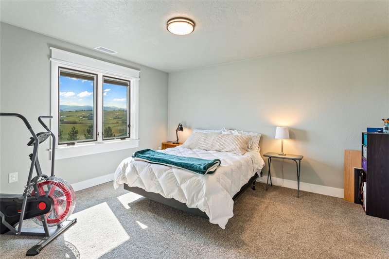 This stunning 3,446 sq. ft. custom home, completed in 2017, sits on nearly 3 beautifully landscaped acres with expansive mountain views. The 4-bedroom, 3-bath layout features 9' ceilings, Pella windows with built-in shades, a gourmet kitchen with both gas and electric cooktops, and a geo-thermal heating and cooling system for year-round comfort and efficiency. Outdoor amenities are second to none-enjoy a fenced backyard, sand volleyball court, basketball hoop, fire pit, water feature (no winterization required), and low-voltage landscape lighting. The oversized 6-car garage accommodates full-size vehicles, and there's a concrete RV pad with electrical hook-up. A new roof and gutters were added in 2023. Located in a quiet cul-de-sac with school bus service and just minutes from I-90 and Missoula International Airport, this one-of-a-kind property blends luxury living with space to play, relax, and entertain. Don't miss your chance to own a rare slice of Montana lifestyle-schedule your showing today!