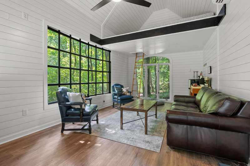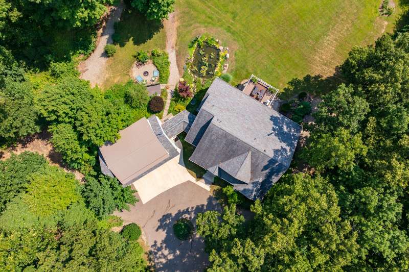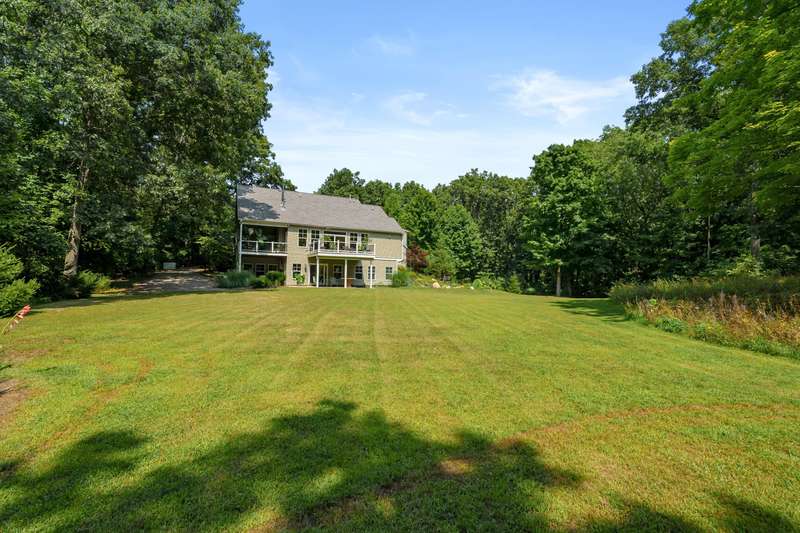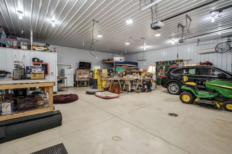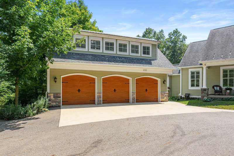 Your sanctuary awaits! If quality and serenity is what you seek, look no further than this lovely wooded oasis. This executive custom walkout on 9 acres has much to offer, including a private fully functioning apartment. The main level includes a Den and the Primary Suite- with private bath and access to a lovely covered deck. The walkout level boasts 4 bedrooms (one set up as a workout room), a full bath and second kitchen. The property includes 3 walking trails, a large garden and 3 outbuildings including an impressive 40X40 pole barn with concrete floor, HVAC and bathroom with heated floors. Another alluring, finished shed has a loft bedroom, electric and HVAC . A peaceful Koi pond, fire pit area and flower garden complete the picture. Don't miss this idyllic offering in Oshtemo!