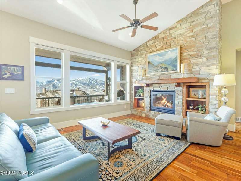 Enjoy panoramic views of Deer Valley, Jordanelle and Timpanogos from a bright, sunny living area. Wood floors, gas fireplace, vaulted ceilings. A covered deck on the main level allows you to appreciate your beautiful view. The main level primary suite also has marvelous views, a spacious primary bath with a large soaking tub, double vanity walk in closet and a customized laundry chute. The lower level walk out basement features an oversized living area with room for all your family and friends, a wet bar, fireplace & even a game or pool table, two additional bedrooms and full bath perfect for family & guests, a downstairs patio for more outdoor living. Seller is offering a carpet allowance. Rustler is conveniently located close to area trails, Deer Valley East Village, Park City skiing, dining, and shopping and 45 minutes to Salt Lake International Airport. Easy to show, call for a private tour!