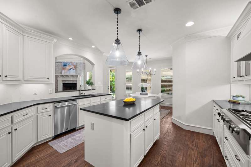 This beautifully appointed Lakewood Heights home offers a seamless blend of comfort, style, and functionality. Designed with entertaining in mind, the spacious living room is anchored by a cozy fireplace and complemented by an adjacent wet bar with wine fridge, while the formal dining room provides the perfect setting for hosting dinners. Upstairs, a large family room adds even more flexibility for gatherings or relaxed evenings, and a downstairs study creates an ideal work-from-home retreat. At the heart of the home, the eat-in kitchen is both elegant and practical, featuring stainless steel appliances, granite countertops, a central island, and a walk-in pantry, with a sunlit breakfast area just steps away. The primary suite is a true sanctuary, complete with its own fireplace, generous walk-in closet, and spa-inspired ensuite bath with dual sinks, soaking tub, and separate shower. Equally impressive outdoors, the fully turfed backyard is designed for effortless enjoyment, highlighted by a spacious covered patio with fireplace and retractable screens, a wooden privacy fence, and a sprinkler system for easy maintenance. Zoned to Geneva Heights Elementary, this home is just minutes from East Dallas favorites including White Rock Lake, Tietze Park, and the shops and dining of Lakewood Villagebringing the best of the neighborhood right to your doorstep.