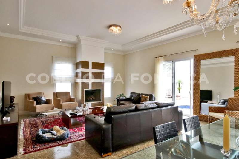 Casa em Condomínio no bairro Aldeia da Serra com 430m² área construída, 4 dormitório(s), 4 suíte(s), 6 vaga(s), 7 banheiro(s), piscina, escritório, depósito, mobiliado (a), dep. de empregados, varanda, aquecedor solar, pé direito duplo.