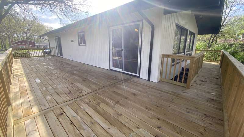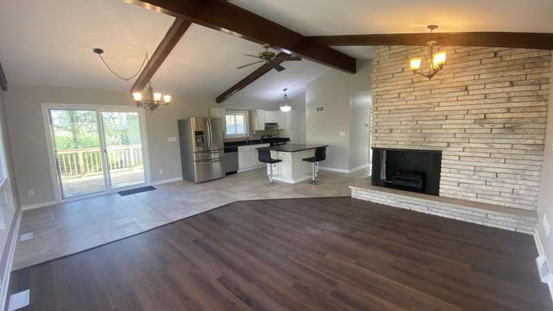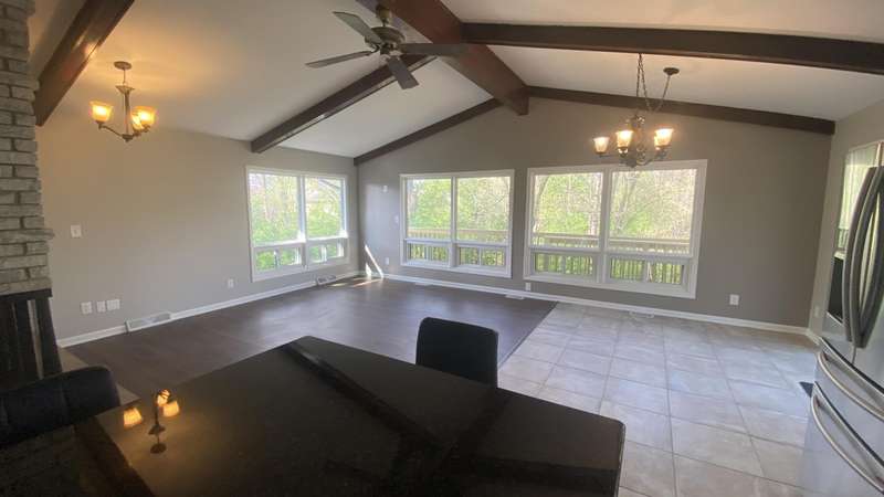 Welcome home to this Beautiful updated 4 bedroom, 2 bath home located on an Awesome large cul de sac lot backing up to wooded natural area in Lakes of the Four Seasons Community. Crown Point schools. So many updates!!! New windows, ext. lighting, vinyl siding, garage door, interior and exterior doors, aluminum soffit, fascia, gutters, and downspouts. Then inside home has been freshly painted throughout. The basement has been redesigned w/ big rec room with walkout to patio, 2 bedrooms and big laundry rm. Bright foyer that leads to the Large Living Room w/ tall ceilings, beautiful stone fireplace. Open to the Dining Rm,kitchen and large deck.The main Bedroom is across from the updated bath, 2nd, 3rd,& 4th bedrooms are spacious with nice closets, & fans. An updated Kitchen with cathedral ceilings, granite counter tops, Big Island stainless steel appliances, adjacent dining area & pantry. Both bathrooms remodeled, new vanities, flooring, tub surround. New carpet, plank flooring, light fixtures. switches, outlets replaced. Enjoy resort-style living in gated community of Lakes of the Four Seasons, with four Lakes, a 18 hole golf course, (is golf-cart friendly throughout) plus close to Interstate 65 for easy travel to Chicago or Michigan. There is a all-sports/fishing lake, a large serene no-wake lake for fishing, peaceful paddling, or swimming plus two other smaller lakes. With lots options for your enjoyment including 18 hole golf course, several beaches, pavilions, beach volleyball, swimming areas with boat/golfcart and car parking. Plus Tennis/Pickleball courts, several parks, including a dog park, soccer, baseball and softball fields. A restaurant plus a pro shop with bar/grill, and community pool. Plus nearby to shopping, hospitals, grocery, restaurants, and businesses just a minutes away. Several events during the year, summer concerts, July 4th parade, fireworks show, Christmas festival, Easter egg hunts, Lions events and other events throughout the year.