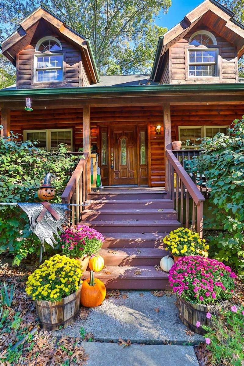 Look no further! Storybook charm meets modern living! Tucked in the woods of a vibrant golf cart community loaded with amenities from beach and pool to walking trails and sports courts. This 3 bed, 3 bath log cabin features a huge first-floor primary suite with vaulted ceilings and a walkout. Other key features; granite countertops, stainless steel appliances, natural woodwork, spacious rooms, and a finished basement. Outside a fenced yard and private greenbelt backdrop. Lake life & adventure awaits! MORE PHOTOS TO COME!