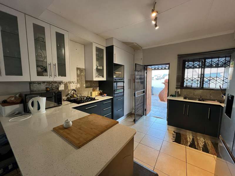 This charming 3-bedroom, 2-bathroom property nestled on a spacious 586 sqm stand is the epitome of comfort and convenience. Step inside and be greeted by the inviting open-plan lounge and kitchen, creating a seamless flow perfect for both relaxation and entertaining. Beautiful fitted kitchen with Ceasar stone counter tops, ample cupboards and eye level oven. The dining room adds an elegant touch, making family meals or dinner parties a delightful experience. With ample space for your vehicles, including a garage for added security and a convenient carport accommodating 2 vehicles, parking will never be a hassle. Enjoy the tranquility of the surrounding neighborhood while still being close to essential amenities. Whether you're looking for a cozy retreat to call home or an ideal investment opportunity, this property ticks all the boxes. Don't miss out on the chance to make this your forever home. Schedule a viewing today and start envisioning the possibilities!