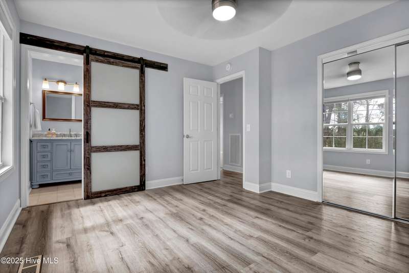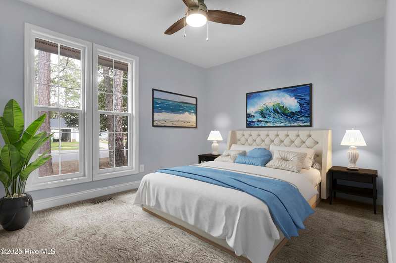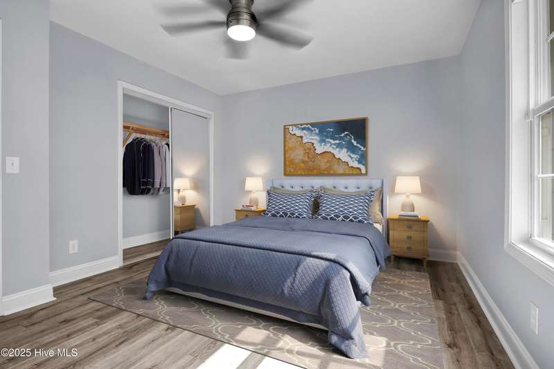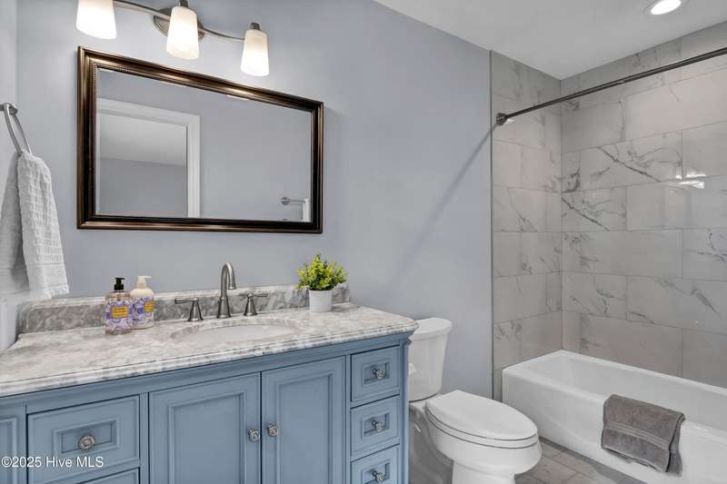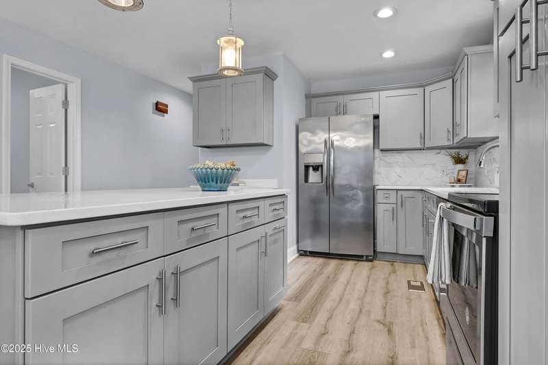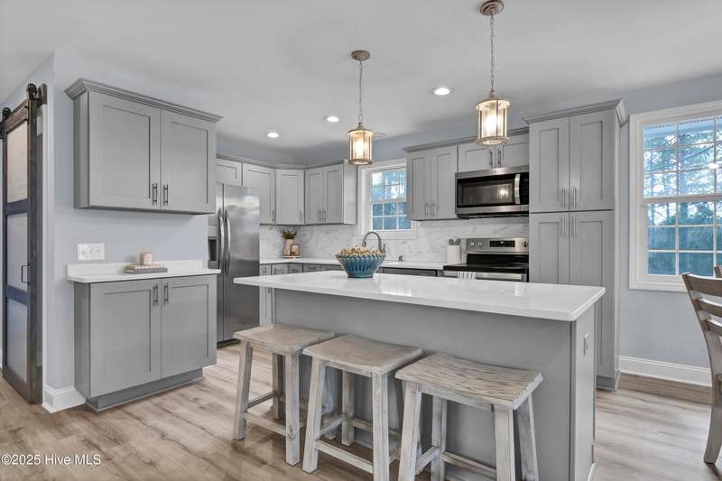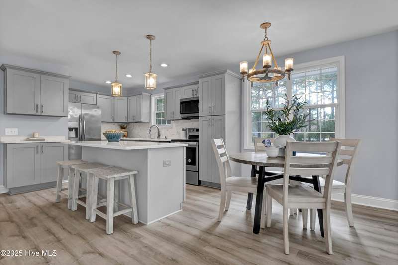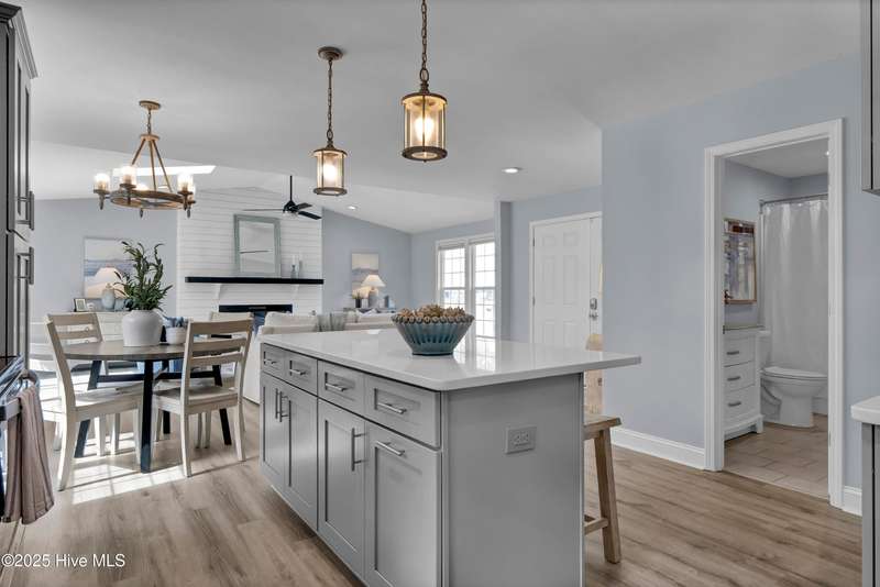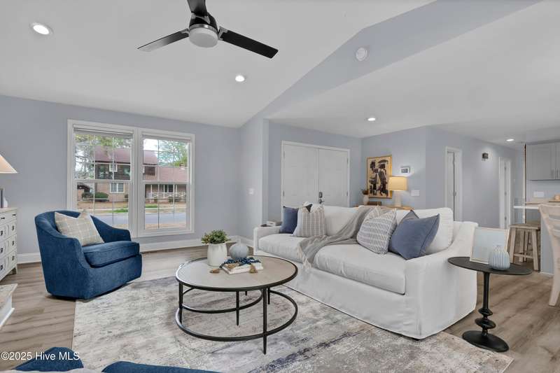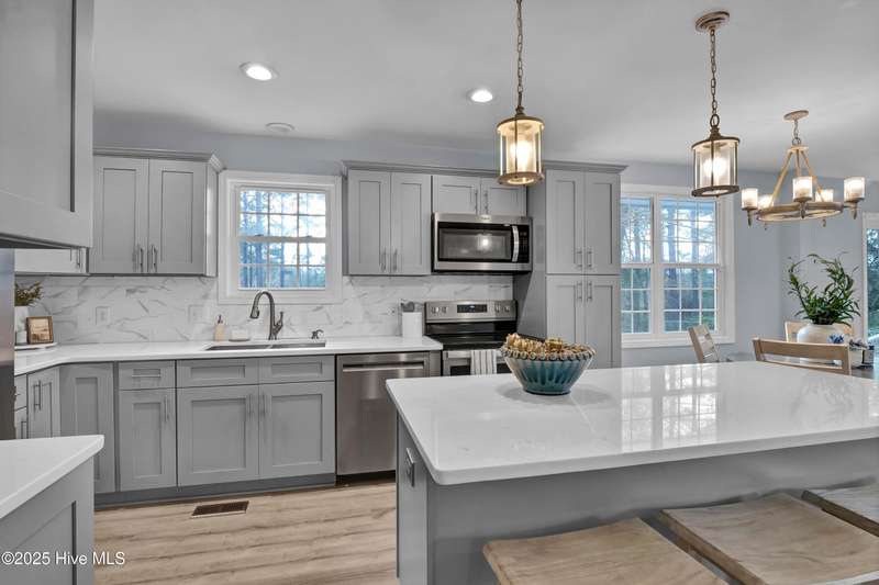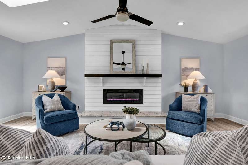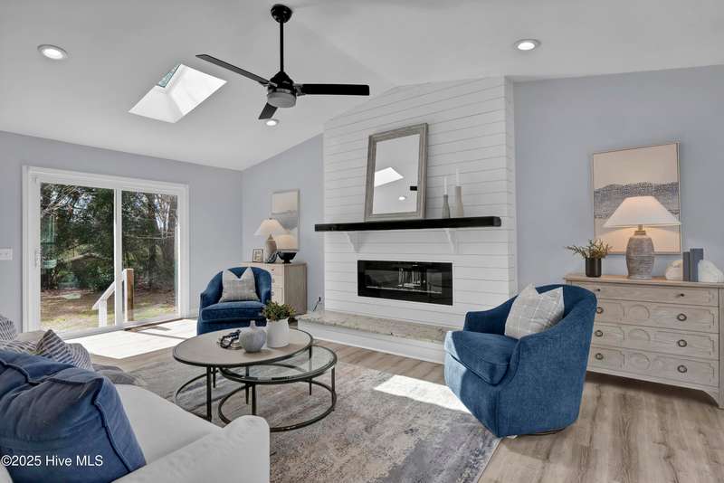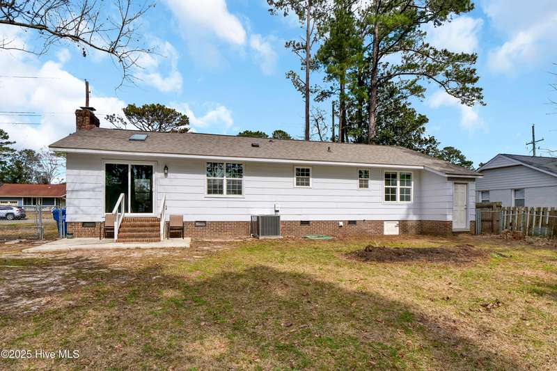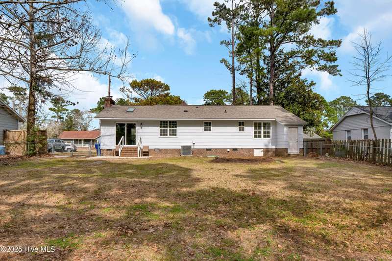 Fall in love with this beautifully renovated and updated 3-BR/2-BA home in Hunters Ridge on a large .37-acre lot! It features an open floorplan, vaulted ceilings, electric fireplace, skylight, ceiling fans and lvp flooring. The kitchen has quartz tops, a kitchen island with seating, built-in microwave, stainless appliances, LED lighting and new soft close cabinets and drawers. While the bedrooms have premium carpet, the primary suite has mirrored closet doors, custom closet shelving and an updated ensuite bath with a custom marble-topped vanity and tub. The main living area overlooks a large fenced back yard where the new owner could possibly construct a detached garage, Accessory Dwelling Unit, firepit or garden oasis. With no HOA, the options are endless! Centrally located in Wilmington, this home is close to downtown, the beaches, UNCW, Corning, I-40, ILM airport, Costco, Walmart, Target and many restaurants! This freshly painted home shows like brand new! Great investment opportunity!