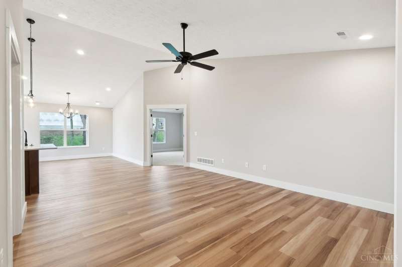 Experience a year-round vacation lifestyle in this brand new, move-in ready ranch! Easy living-HOA covers landscaping, grass cutting & snow removal. Designed for easy access-no steps. Low maintenance-everything is new-no expensive repairs or updates. A home with these upgrades in this community cannot be built at this price. Open design features soaring cathedral ceilings, abundant natural light & upgrades throughout! The kitchen is a chef's dream, with an island, quartz countertops, 42 soft-close cabinetry with crown molding, Moen fixtures, stainless steel appliances & walk-in pantry. Expansive primary suite boasts a huge walk-in closet and a lavish spa bath with a 7ft zero-entry walk-in shower, bathing bench, dual vanities & elegant quartz countertops. Large covered front porch and patio. Cul-de-sac location in a private & exclusive community near university, hospital, shops & parks. Unparalleled convenience & luxury. Fencing allowed! Embrace the ultimate in luxury living today!
