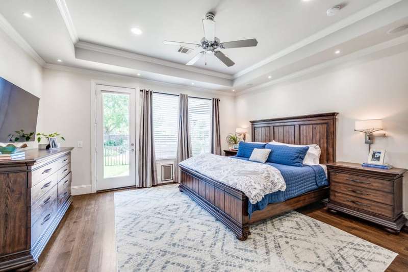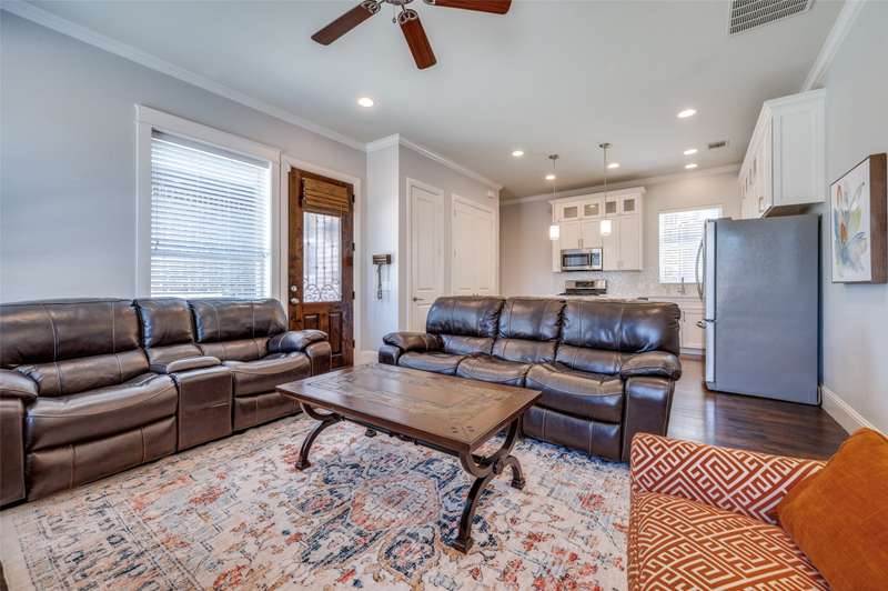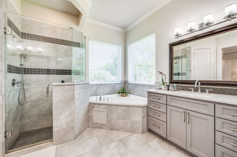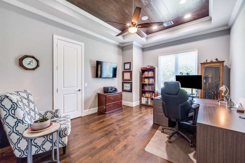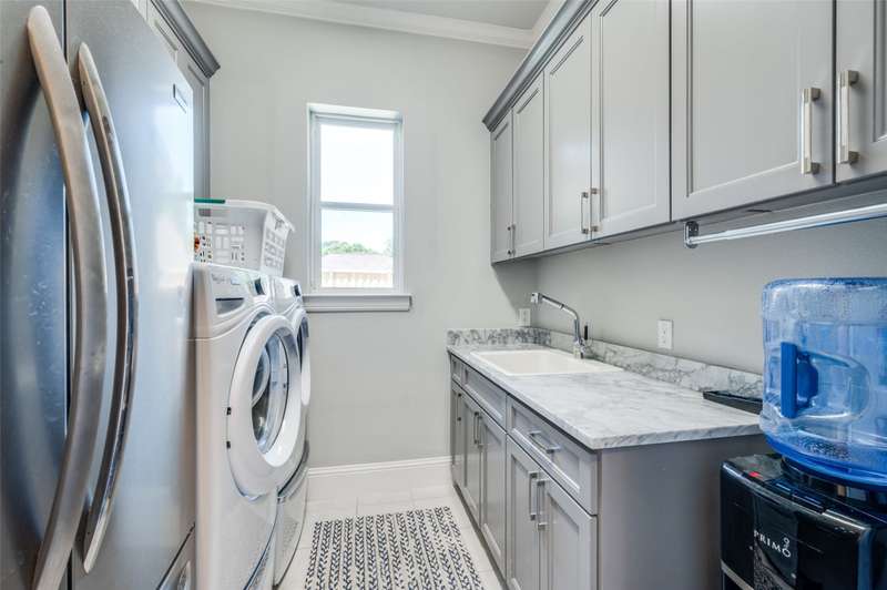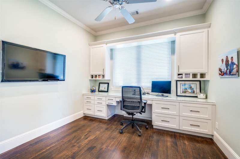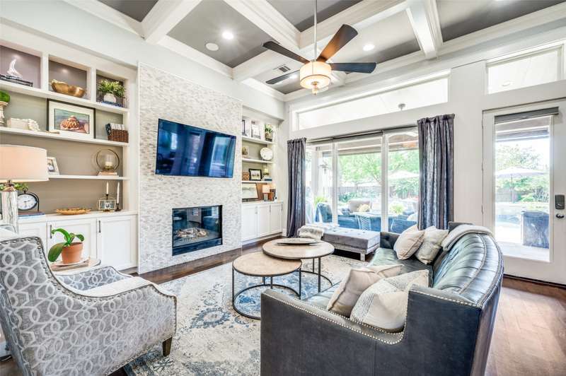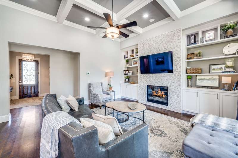 Multi-Gen Lakeside living in West Frisco! DESIGNED with HEART ~ with an attached 1 story Mother-in-Law .54 acre with Peek-a-Boo lake views. This custom Hensley-built home with constructed in 2014, spans 3,817 square feet, the residence features 4 bedrooms, 6 bathrooms, a dedicated study, two distinct living areas. Inside, modern luxury abounds with custom window coverings, stylish lighting fixtures, fresh and sophisticated paint tones, and intricate ceiling details. Wide plank smooth hardwood floors flow throughout, complementing custom built-in display shelves and cabinetry, a dedicated wine niche, and a sleek, modern kitchen. Marble counter tops, with upgraded stacked cabinets with lite display glass, beamed ceiling details, cool lighting and hardware. Hardwood floors, SS appliances, gas c-top, double ovens. The primary retreat, kitchen, and main living areas all offer spectacular views of the backyard pool oasis. The beautifully landscaped backyard is a true highlight, featuring a saltwater pool with water features, a raised spa, an outdoor shower, and a convenient pool bath, plus a hot tub capable of seating six added in 2023. The pool area is enhanced by a large covered patio with direct access to the pool bath, living room, primary suite, and the attached guest house. MULTI-GENERATIONAL attached guest house provides single-story living with a full kitchen, island, living area, and a bedroom with a reading nook, the spa-inspired ensuite bath is complete with a full over-sized ADA Shower, dual vanities, a walk-in closet. This guest house has Front door entry and back covered patio. Adding to the property's appeal is a detached two-story *she-shed* workshop with a one-car garage and a golf cart garage. This exceptional home is located in the Saratoga subdivision, a lakeside community known for its desirable absence of HOA fees and No city taxes. Residents can enjoy easy access to Hidden Cove Park and Marina at Lake Lewisville, just a short walk away.