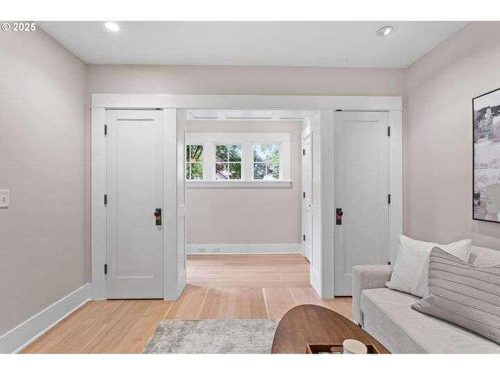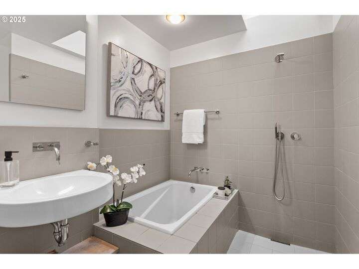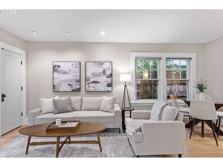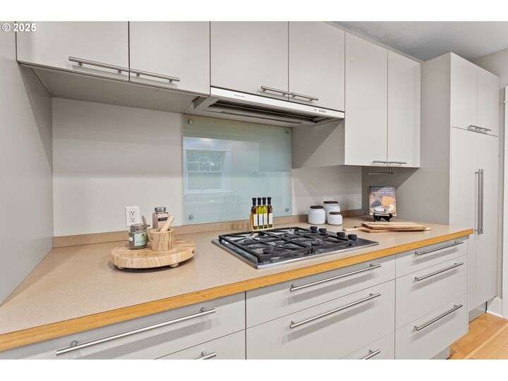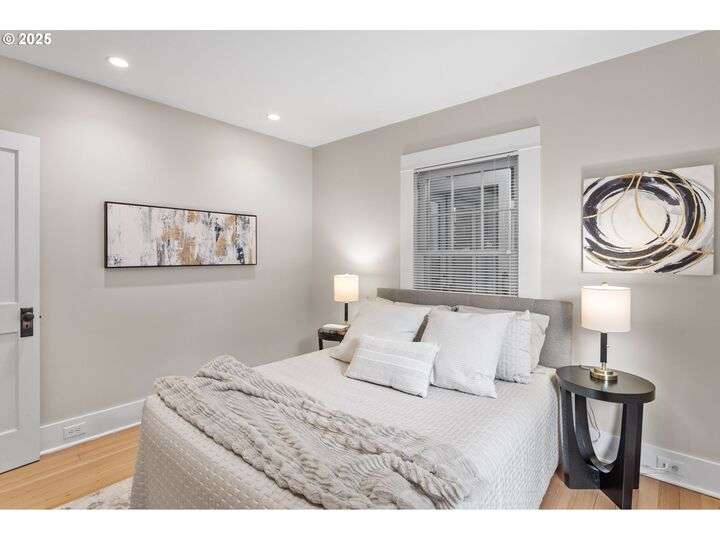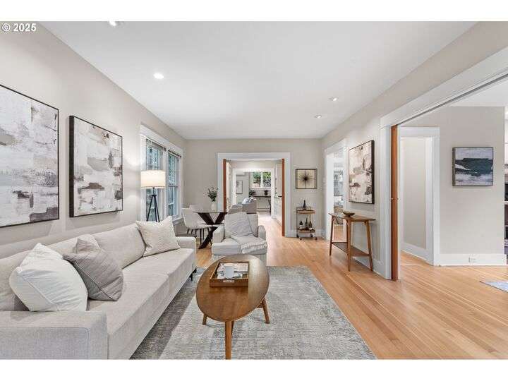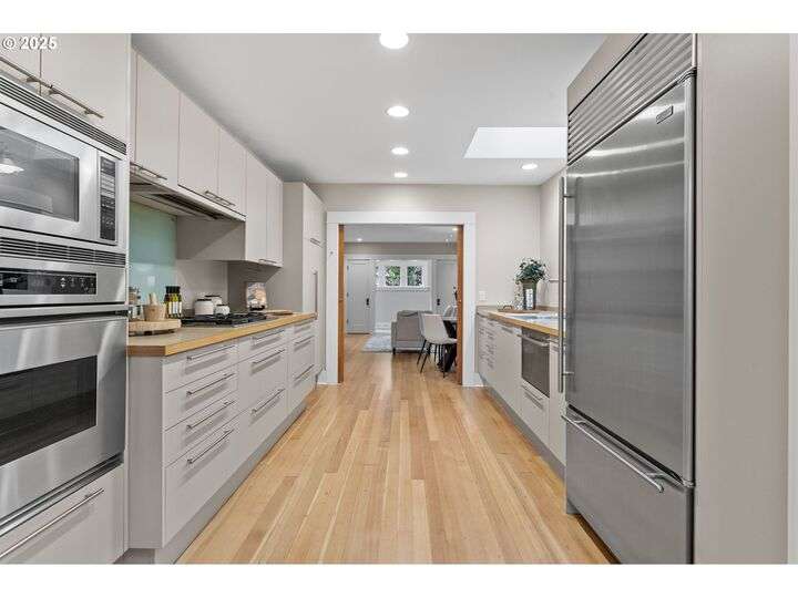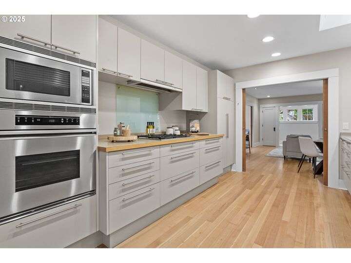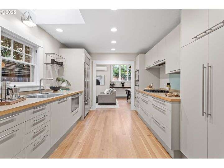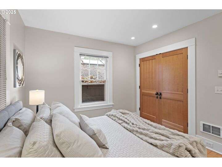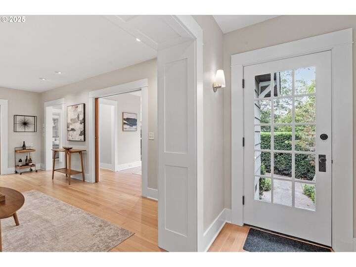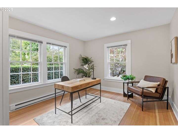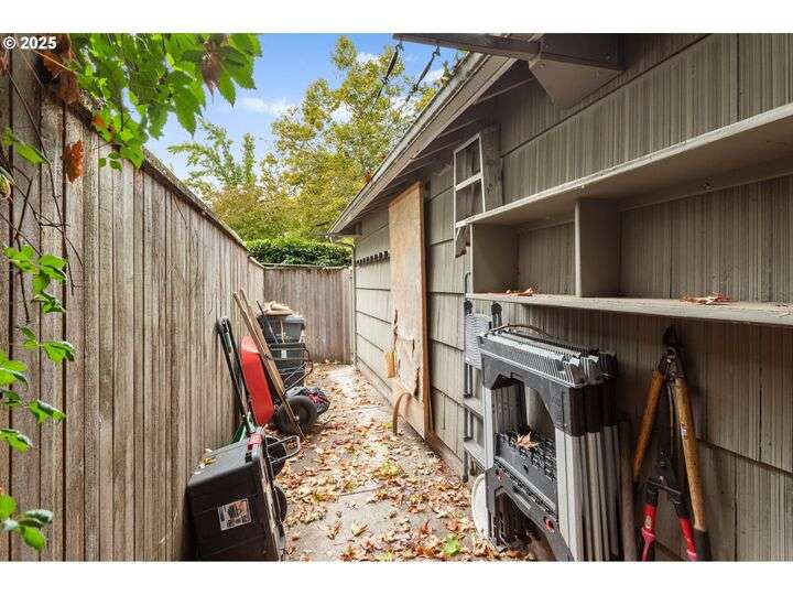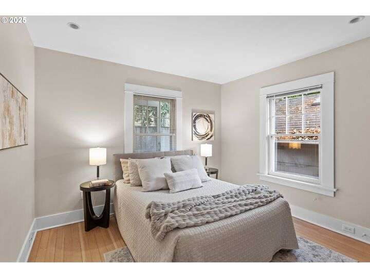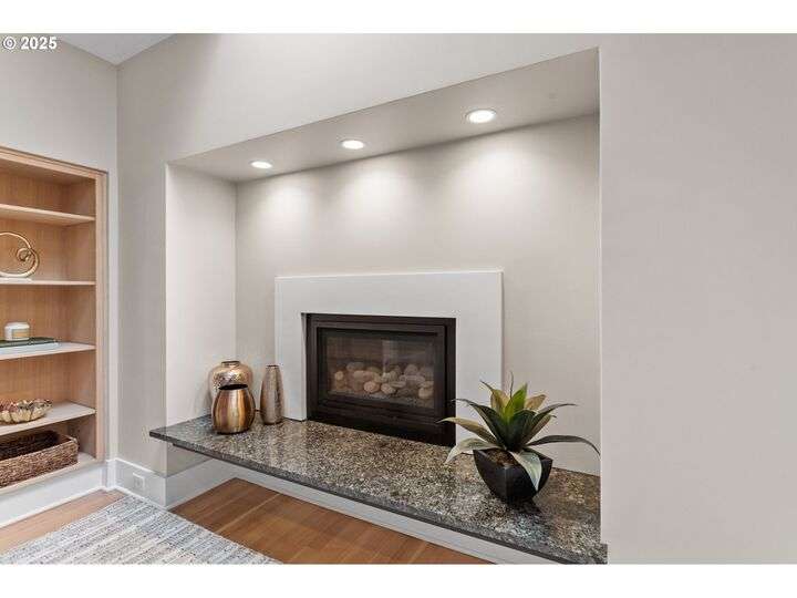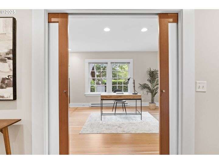 This home sits on a private lot four blocks from the U of O. In 2001 the original interior was taken back to the studs, replumbed, rewired, replastered and fir floors added. Skylights added much additional light.Additions of a light-filled foyer and multi-purposed room at the rear of the house contribute to its most dramatic feature; openness and the feeling of an urban loft. Standing in the front entry, there are fifty feet of uninterrupted space from front to back. Two sets of etched-glass pocket doors allow the space to be partitioned when desired.The rear addition includes a gas fireplace, built-ins and French doors that look out onto a hardwood deck with bench, water fountain, and private courtyard.In addition to a mini-split heat pump, all of the windows can be opened during summer nights permitting the quiet, whole house attic fan to bring in cool night air.The kitchen features all stainless appliances including a Sub-Zero refrigerator/bottom-drawer freezer, DACOR convection oven, microwave oven and gas cooktop. Also a Fisher & Paykal drawer-style dishwasher and a slim Kitchen-Aide pullout exhaust fan.The bath is a spa-like retreat with a no-enclosure, Italian-style shower, Italian porcelain tiles and radiant heat warming the floor tiles. Duravit wall hung toilet and vanity. An unusually deep Kohler tub make everyday moments memorable. Stacked ASKO washer and dryer are located nearby.Immediately adjacent to the house is an oversized one-car garage, with four large skylights. The back door of the garage is conveniently located just a few steps from the rear entry of the house.