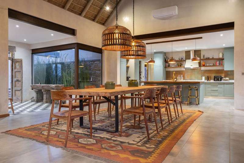 A Bushveld Dream Come True ?Çô Luxury Meets Nature in This 5-Bedroom Oasis with Outdoor Living, Pool & Scenic Views Nestled within the secure and serene Zandspruit Estate in Hoedspruit, this exclusive bush home offers the perfect fusion of refined luxury and untamed natural beauty. Ideal for those seeking a stylish, short-term escape into the Lowveld, this fully furnished property is now available to rent for a 3-month period ?Çô immediate occupation available. Designed to offer space, comfort, and uninterrupted connection with the outdoors, the home accommodates up to 10 guests across five spacious, elegantly appointed bedrooms. Each bedroom boasts a plush king-size bed, ample storage, and its own en-suite bathroom, fitted with either a sleek walk-in shower or indulgent bathtub. For a true bushveld experience, there?ÇÖs also a private outdoor shower where you can refresh under the African sky. The heart of the home is its expansive open-plan living space, featuring a beautifully fitted kitchen equipped with all the essentials ?Çô including a stove, oven, microwave, air fryer, and large fridge-freezer. A central island with bar stools makes for a relaxed breakfast setting, while the adjoining scullery houses a washing machine, tumble dryer, and dishwasher for added convenience. The inviting lounge area is sunken and cosy, complete with oversized couches, a feature fireplace, and a smart TV with streaming capabilities ?Çô perfect for unwinding after a day of bush adventures. Fast, reliable Wi-Fi ensures you stay connected, whether working remotely or sharing your getaway moments online. Entertaining is a breeze with a built-in bar and indoor braai area, ideal for evenings with family or friends. Step outside to a generous covered patio, where you?ÇÖll find an outdoor braai and alfresco dining space overlooking a Moroccan-tiled splash pool and manicured garden. Sun loungers invite you to soak up the Lowveld sun, with only the sounds of birdlife and rustling trees around you. Secure parking is provided, and with Kruger National Park Safaris just 2.5 km from your doorstep, you're perfectly positioned for thrilling wildlife excursions, scenic drives, and all that the region has to offer. Whether you're between homes, taking an extended working holiday, or simply craving a tranquil change of pace, this luxurious Hoedspruit haven is an unbeatable base for your next chapter.