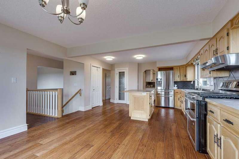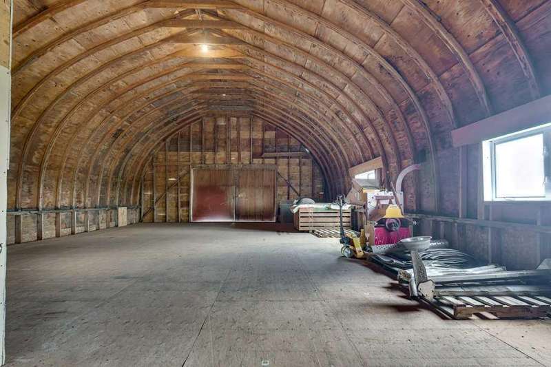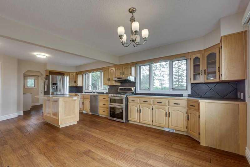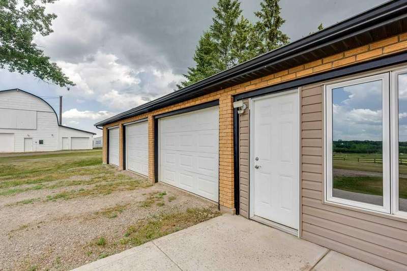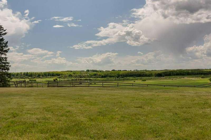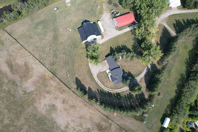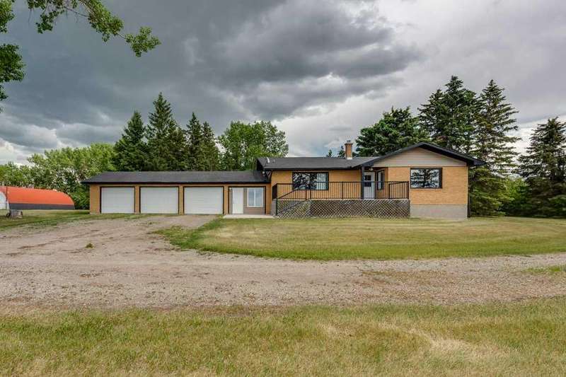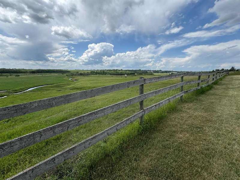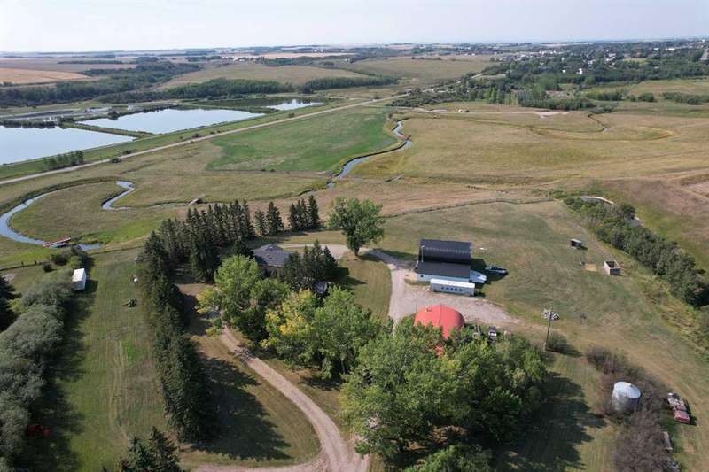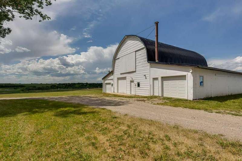 Just five minutes from the charming community of Didsbury, discover this breathtaking 7.95-acre estate—a truly rare and hidden gem nestled atop a scenic ridge with panoramic views that stretch from the serene creek valley below to the rolling farmland and glowing lights of town, all crowned by the majestic backdrop of the Rocky Mountains. As you pass through the gated entrance and travel down the winding, tree-lined driveway, you'll immediately feel the magic of this private, storybook setting. Towering mature trees embrace the beautifully landscaped yardsite, creating a sense of peace, space, and total seclusion. Every inch of this property invites exploration—from lush sprawling lawns and garden areas to open, partially fenced pastures and a deep natural ravine with a large pond that reflects the sky like a mirror. Whether you envision a hobby farm, a countryside sanctuary for raising children and animals, a base to run your business, or simply a tranquil retreat for rest and creativity, this versatile acreage checks every box. At the heart of the property stands a timeless, brick-faced 4-bedroom, 2-bath bungalow, meticulously maintained and move-in ready. With its warm, inviting layout, including a convenient back porch laundry room, it's perfectly suited for country living. Start your day with coffee on the east-facing deck bathed in morning light, and unwind with a glass of wine while watching unforgettable sunsets from the west-facing deck. For those who dream big, the property offers an extraordinary array of outbuildings: A semi-attached triple garage for everyday convenience, A massive 40’x60’ heated arch-rib workshop complete with washroom, kitchenette, and private office/bedroom—ideal for business, hobbies, or guest space, And the pièce de résistance: a stunning white hip-roof barn that blends nostalgic charm with modern function. Its lower level features a heated shop and cold storage annex, while the expansive upper loft is a blank canvas—imagine a golf simulator, art studio, event space, or luxurious guest quarters. This is more than just a property—it’s a lifestyle of endless potential, natural beauty, and peaceful luxury, all in a highly desirable and central location with quick access to Hwy 2A & 582, schools, shopping, and all the amenities of Didsbury. Don’t miss your chance to own this one-of-a-kind rural masterpiece. Properties like this are rarely available and even harder to forget.