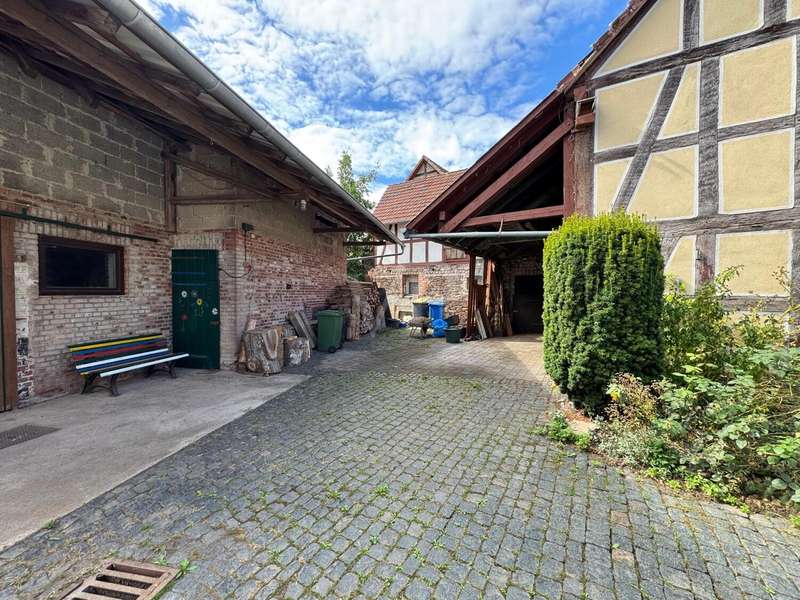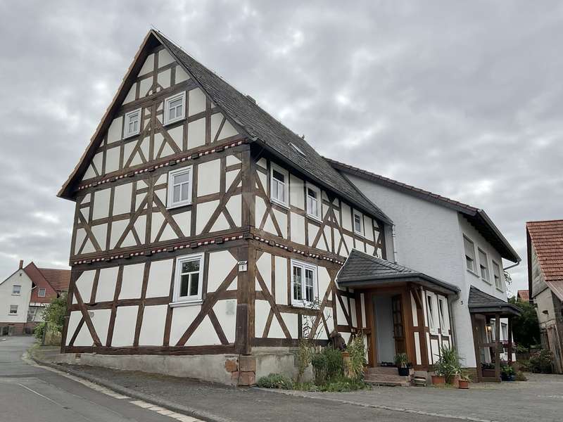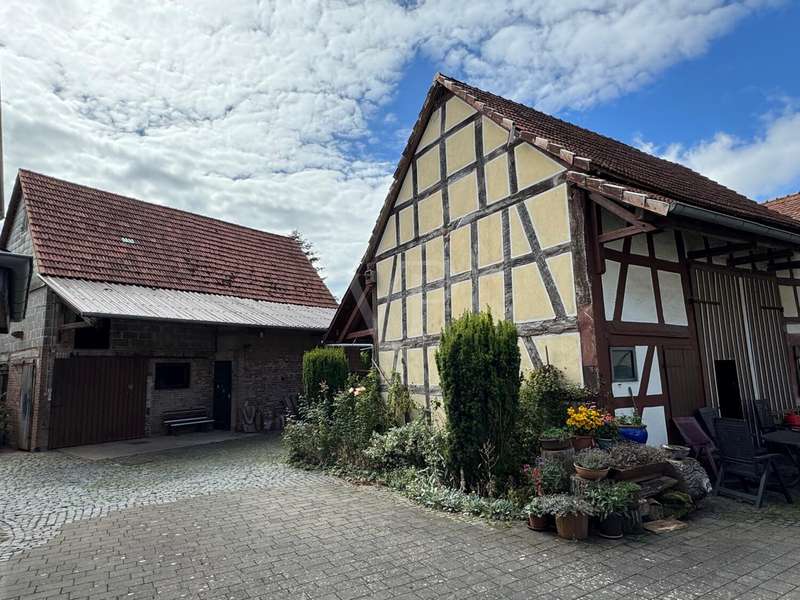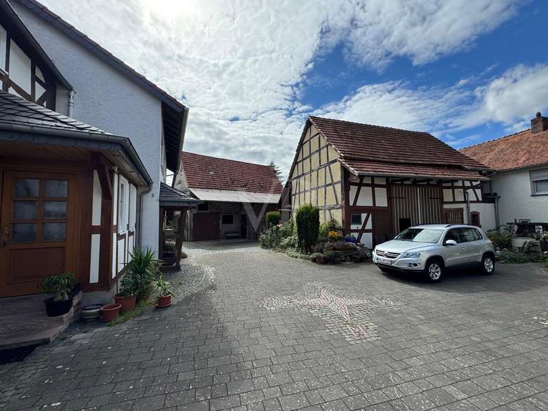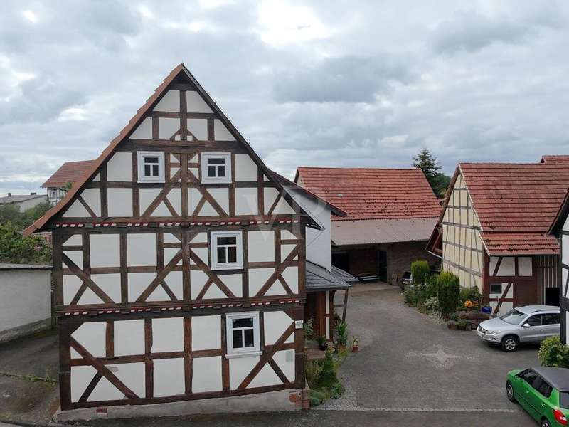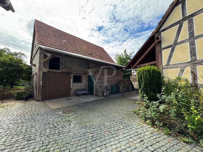 Property with two residential buildings, large plot and versatile outbuildings A special property with two residential buildings on a plot of around 1,776 m² is for sale in the listed town center. Parts of the complex are registered as an individual cultural monument, combining historical substance with great development potential. The ensemble consists of a solid residential building constructed in 1971 and an old building dating from around 1783. The new building offers a well thought-out room layout over two floors. On the first floor there are four rooms, a bathroom and a heating and technical room. There are four further rooms on the upper floor, which can be used flexibly as bedrooms, work or hobby rooms. From here, there is access to a spacious terrace on the roof of the garage. The flooring is already in place, only the railings need to be added. Depending on future plans and visions, a transition to one of the outbuildings could also be realized from here. Plastic insulating glass windows, some of which have been replaced, underline the solid fittings. The oil-fired central heating system from 2004 ensures a reliable heat supply. A special bonus is the attic, which was prepared for conversion at the time of construction and can immediately create additional living space. The building was recently given a new roof covering, which further enhances its structural condition. The historic old building from around 1783 is a classic half-timbered house, which impresses with its original character, but requires extensive renovation. In 2004, wooden isoglass windows with glazing bars were installed, a toilet was added and parts of the façade and roof were renovated. However, a connection to the heating system, a fully-fledged bathroom and a modern electrical installation are still missing. This part of the building is therefore aimed in particular at lovers of historical substance who are prepared to put in the effort and commitment to develop a special gem. The large plot offers plenty of space and is planted with fruit trees - ideal for self-sufficient people who value growing their own food and having sufficient space. The property has its own well. The property is complemented by several outbuildings: a former bakery, now used as a garden shed, as well as three barns and former stables in solid condition. The large barn with a practical driveway is particularly noteworthy. The outbuildings are ideal for use as workshops, storage space or parking facilities - and, depending on future plans, also offer potential for additional living space. Thanks to the size of the plot, the two residential buildings and the versatile outbuildings, there are numerous possible uses - from multi-generational living and self-catering concepts to a combination of living and working. The location in the historic town center underscores the special character of the property. Conclusion: This property combines history, space and possibilities - ideal for people who want to combine spacious living, self-catering and individual design ideas.