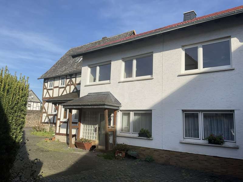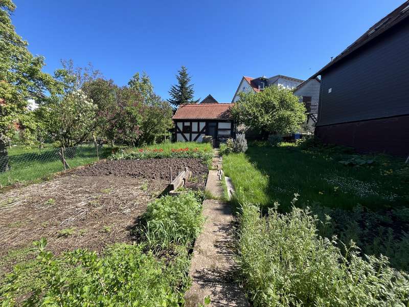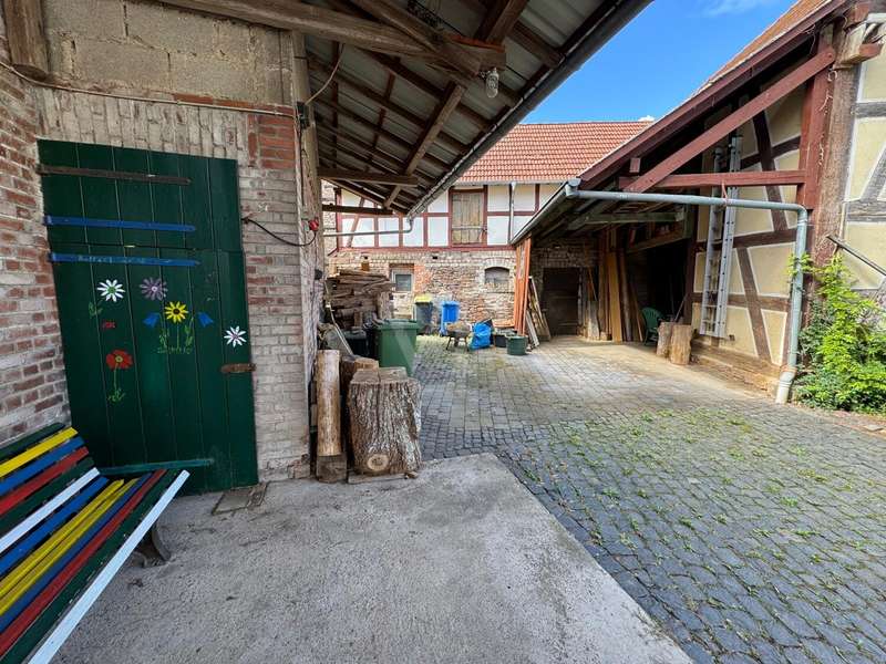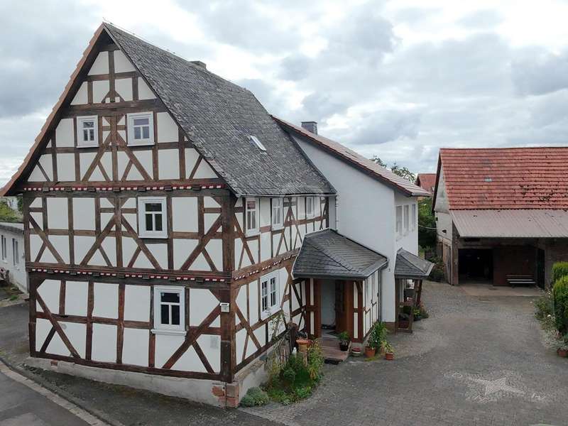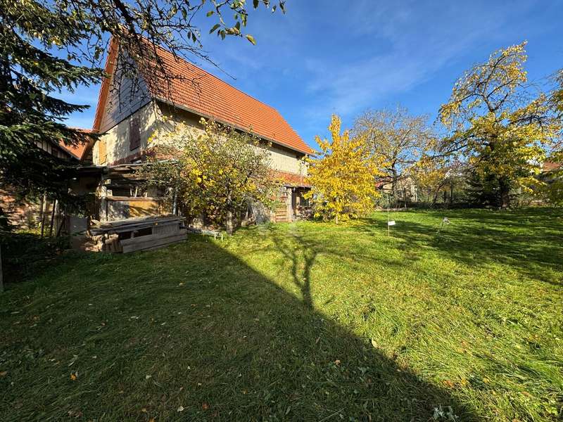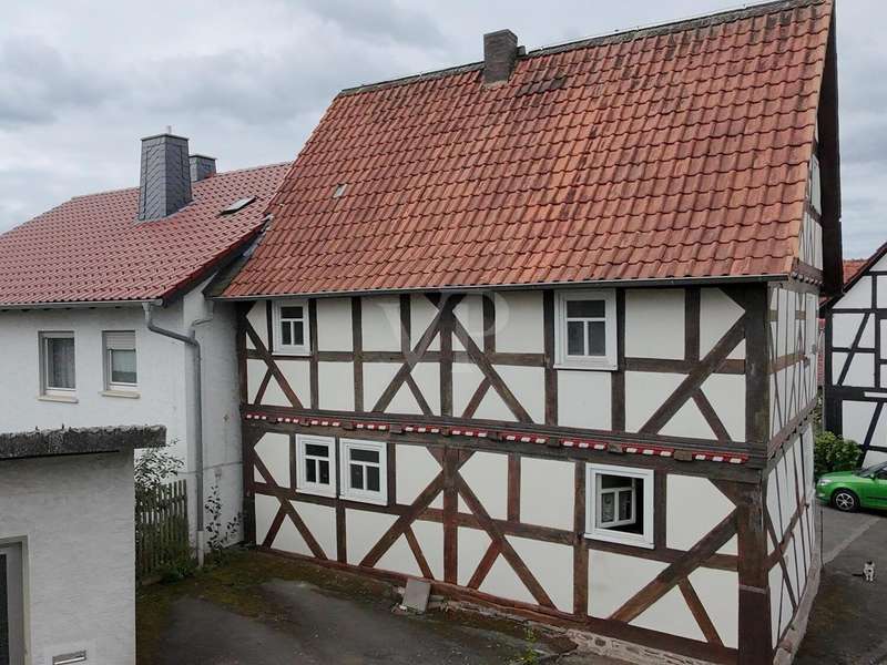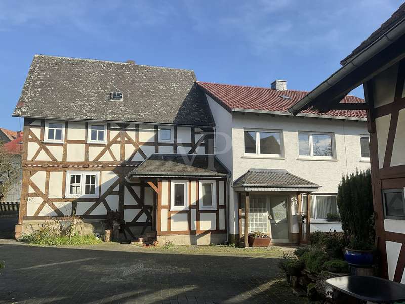 Property with two residential buildings, large plot and versatile outbuildings A special property with two residential buildings on a plot of around 1,776 m² is for sale in the listed town center. Parts of the complex are registered as an individual cultural monument, combining historical substance with great development potential. The ensemble consists of a solid residential building constructed in 1971 and an old building dating from around 1783. The new building offers a well thought-out room layout over two floors. On the first floor there are four rooms, a bathroom and a heating and technical room. There are four further rooms on the upper floor, which can be used flexibly as bedrooms, work or hobby rooms. From here, there is access to a spacious terrace on the roof of the garage. The flooring is already in place, only the railings need to be added. Depending on future plans and visions, a transition to one of the outbuildings could also be realized from here. Plastic insulating glass windows, some of which have been replaced, underline the solid fittings. The oil-fired central heating system from 2004 ensures a reliable heat supply. A special bonus is the attic, which was prepared for conversion at the time of construction and can immediately create additional living space. The building was recently given a new roof covering, which further enhances its structural condition. The historic old building from around 1783 is a classic half-timbered house, which impresses with its original character, but requires extensive renovation. In 2004, wooden isoglass windows with glazing bars were installed, a toilet was added and parts of the façade and roof were renovated. However, a connection to the heating system, a fully-fledged bathroom and a modern electrical installation are still missing. This part of the building is therefore aimed in particular at lovers of historical substance who are prepared to put in the effort and commitment to develop a special gem. The large plot offers plenty of space and is planted with fruit trees - ideal for self-sufficient people who value growing their own food and having sufficient space. The property has its own well. The property is complemented by several outbuildings: a former bakery, now used as a garden shed, as well as three barns and former stables in solid condition. The large barn with a practical driveway is particularly noteworthy. The outbuildings are ideal for use as workshops, storage space or parking facilities - and, depending on future plans, also offer potential for additional living space. Thanks to the size of the plot, the two residential buildings and the versatile outbuildings, there are numerous possible uses - from multi-generational living and self-catering concepts to a combination of living and working. The location in the historic town center underscores the special character of the property. Conclusion: This property combines history, space and possibilities - ideal for people who want to combine spacious living, self-catering and individual design ideas.