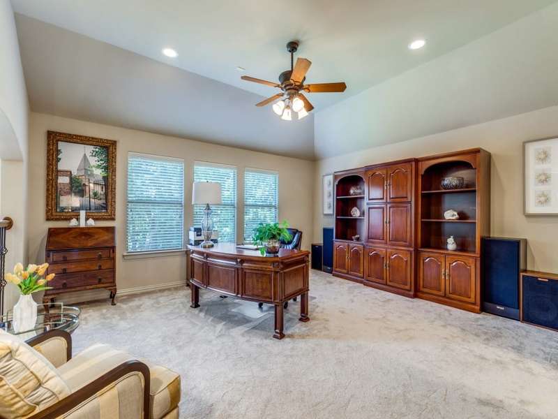 It starts with the lushly landscaped front yard. Located on one of the largest lots in the subdivision, this stunning, inviting meticulously maintained home draws you in. You can feel the quality with your first breath - the dramatic entry, gleaming handscraped hardwoods, tall ceilings, a warm and welcoming family room featuring a stone fireplace with double crown molding, luxurious fabrics. Bathed in in natural light, the expansive living area flows seamlessly to include formal dining, kitchen and breakfast room with a bay window overlooking the oversized, private back yard with trees lining the back fence. (backs to open area). The chef's kitchen Features a very large island topped with creamy granite, Tons of counter and cabinet space and updated Kitchenaid dishwasher and microwave. The private Study or flex room with adjacent bath leading to the laundry are conveniently and discre etly located nearby. The spacious Primary Suite is a true retreat with an ensuite bath featuring a separate shower and generous walk-in closet. The second story features 3 large bedrooms, 2 baths, game room, media room, and surprise heated and cooled. bonus room with massive closetfor incredible, convenient storage, etc. Updates include, roof (2008), 2 new HVAC units (2025), tankless HWH (2024), new interior and exterior paint (2022 & 2025), Fence re-stained (2025), Roof (2017) various hardware. Better hurry! This one is too good to miss!