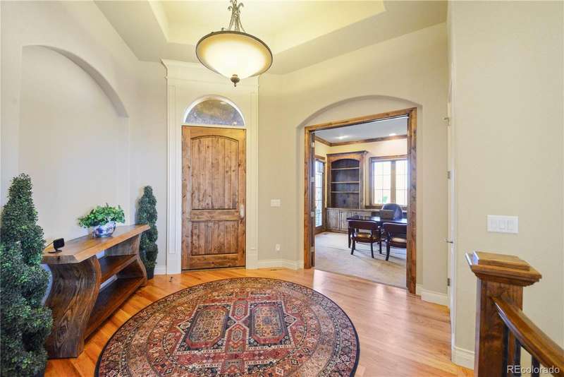 A masterpiece home built by revered Bainbridge Custom Homes in the renowned Pradera Golf Club. A rare ranch model home with the finest appointments and upgrades throughout the superior quality speaks for itself. Bainbridge/Forest Glen custom home with the modern, bright, light and open style popular in todays market but seldom found. Well maintained and gently lived in only part time - pride of ownership is obvious here. Secluded, private backyard buffered with an incredible water feature with no homes behind it.. Raised ceilings for that light, spacious, open atmosphere. Perfect open and seamless gourmet kitchen/family room for an ideal great room. Kitchen offers sunny eating room off to one side with views of the backyard and beyond. Upgraded throughout nothing to do but move in and start enjoying this fabulous home. Also includes upgraded light fixtures, custom trim package, knotty alder wood throughout,ceilings fans, extensive wood flooring, beamed ceiling, expanded quiet, private patio with gorgeous views plus firepit and outdoor kitchen(Fontana pizza oven from Italy, wood fireplace, grill, sink, mini frig), raised lower level ceilings, large game room with wet bar, solid panel doors and the list just goes on. This is the home of your dreams as evidenced in the beautiful photographs. Attention to detail at every turn. Drive your private golf cart to the golf clubhouse mere blocks away for a round of golf, practice, dinner, exercise in the fitness center, watch a sports event, etc. Minutes to DTC, DIA, i-25, C-470, C-225, restaurants, shopping, 2 hospitals, Castle Rock, Parker and much more!