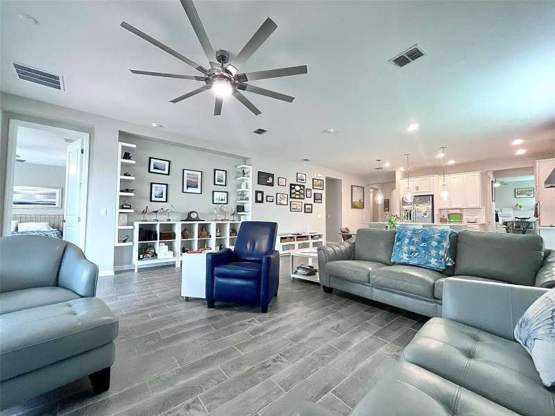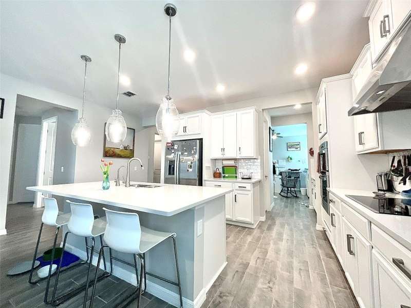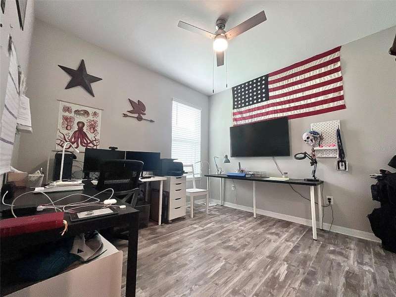 Under contract-accepting backup offers. Low interest rate Assumable VA Mortgage and a 1-Year Home Warranty!! Discover this beautifully appointed 4-bedroom, 3-bathroom home with a flex room in the gated Bellalago community of Kissimmee. With high ceilings, abundant natural light, and durable tile and luxury vinyl flooring throughout, this home blends elegance with function. The chef-inspired kitchen boasts Quartz countertops, a built-in oven, touchless faucet, water purifier, and Shelf Genie cabinetry, plus a walk-in pantry and coffee/dry bar ideal for entertaining. The primary suite offers a spa-style bath, while the flex room adds versatility for a home office, studio, or dining space. Outdoors, enjoy a screened lanai with a fountain and preserve views. The backyard is enclosed with metal fencing that enhances the exterior while maintaining an open feel. Upgrades include new gutters, screened enclosure (2023), and a modern security system. Furniture and golf cart are negotiable. Bellalago offers resort-style amenities: a pool, fitness center, boat lifts, trails, sports courts, and a clubhouse. Experience Florida living at its finest. Contact me to schedule your private showing!