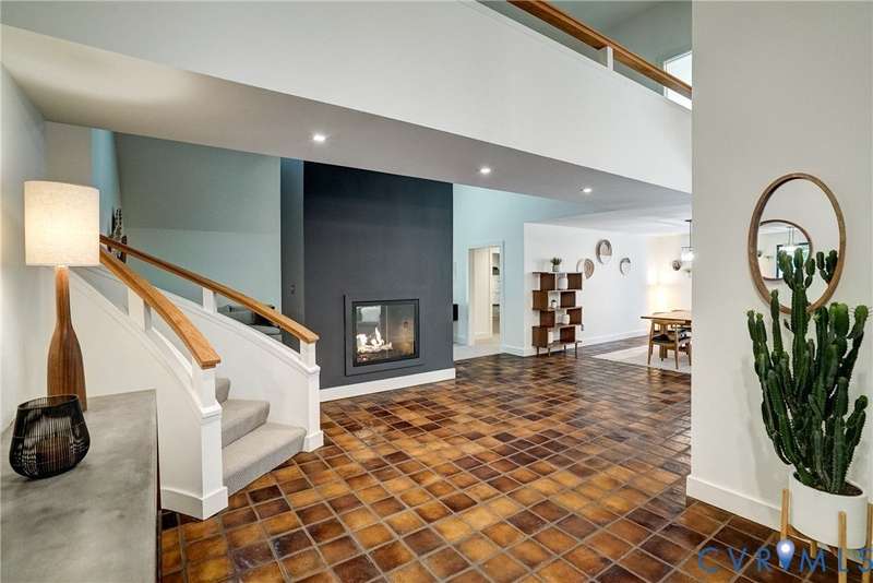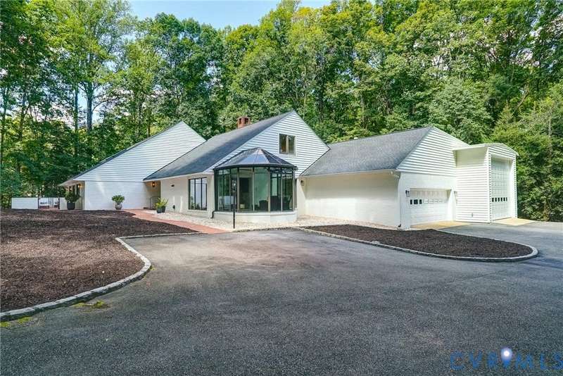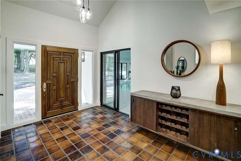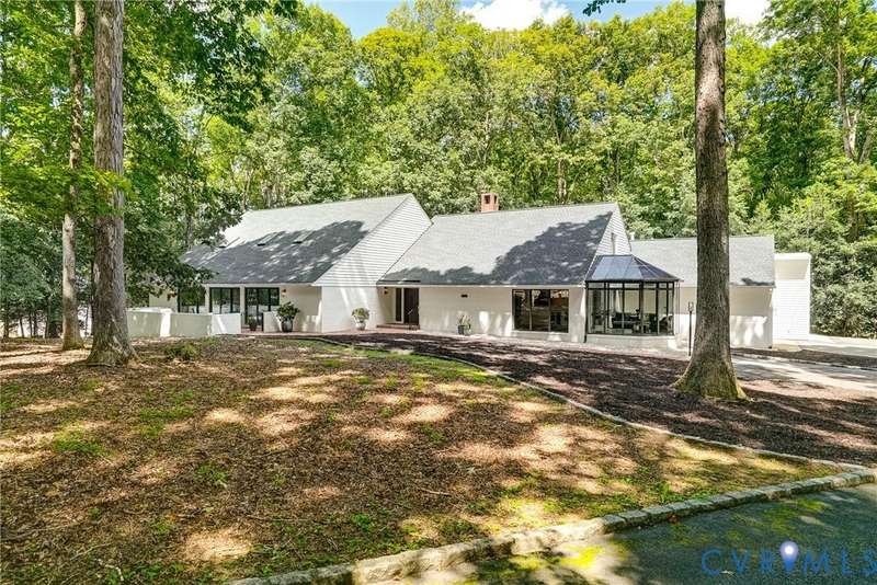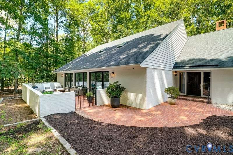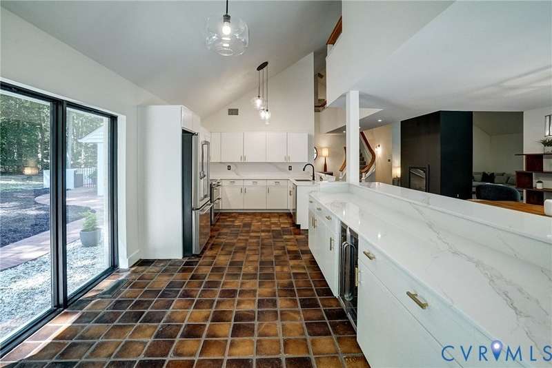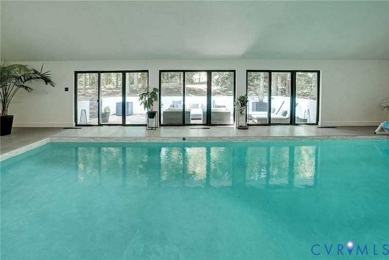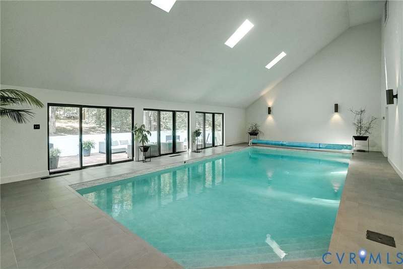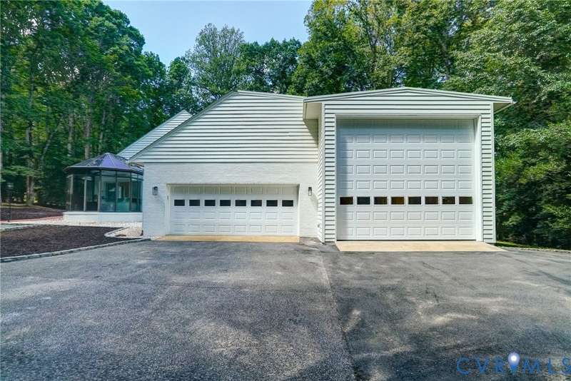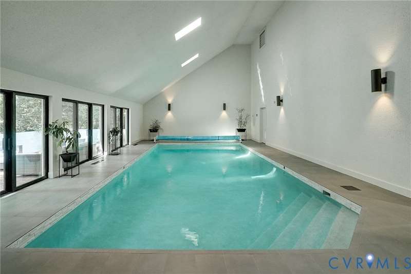 Hermitage Country Club living in Broad Run with neighborhood golf cart path access. Renovated interiors with vaulted ceilings, skylights and open concept living in this modern brick exterior home. The carved wood front door is stunning and welcomes guests into the Spanish tile floored foyer with its two-sided gas log fireplace that also is the centerpiece of the vaulted family room. First floor primary suite with hickory flooring, updated spa style shower and tub, quartz double vanity, water closet, walk-in closets and private balcony. Updated kitchen with original Spanish tile flooring in 2024-2025 with quartz countertops and backsplash, new stainless GE Cafe induction range with split oven, Bosch dishwasher, beverage refrigerator, open to casual dining area. Sunroom with vinyl flooring and mini-split adjoins the kitchen. First floor bedroom or office with corner stone gas log fireplace. Two second floor bedrooms and fully renovated bathroom with new flooring, shower, vanity and fixtures. The indoor heated, chlorine and gunnite pool was fully refurbished in 2020 and is 16' x 32' with an adjoining full bath with shower. Large front courtyard style patio off the pool room for relaxing or entertaining. Two-car garage is 24' x 23' and the RV garage is 18'x 47 with a pitched ceiling height of 15 1/2 to over 17'. Geothermal heat pump 2018, pool room heat pump 2024. Encapsulated crawl space with dehumidifier. Roof 2020 with skylights except for 2018 primary suite closet addition. Whole house generator. New carpet in 2024 in living room, bedroom/office and 2nd floor. Exterior painted cedar in 2024; interiors painted in 2024. Take your golf cart to the Hermitage Country Club clubhouse via the cart path from the end of Broad Run Rd across the lake dam with views of Sabot holes 18, 8 & 9.