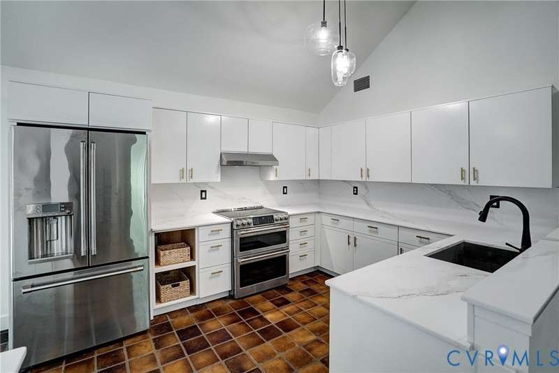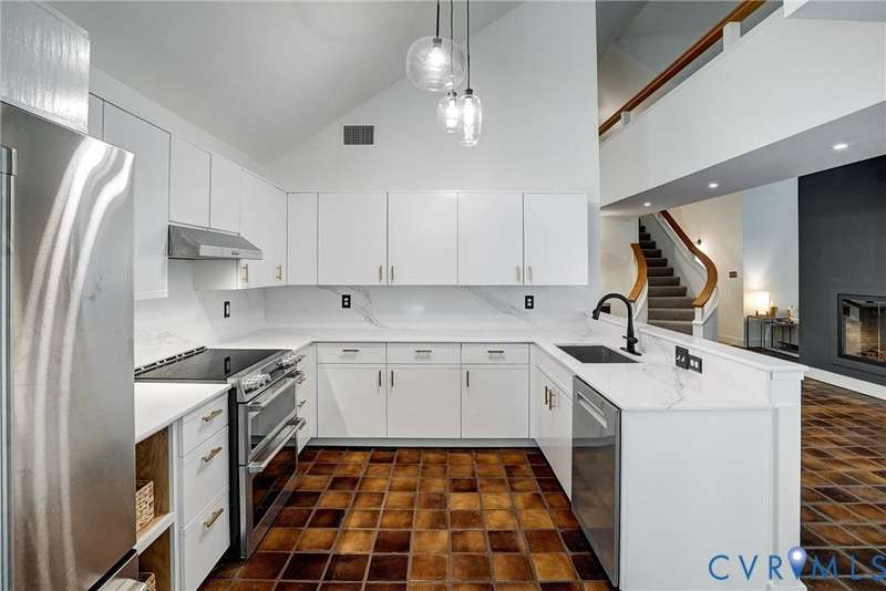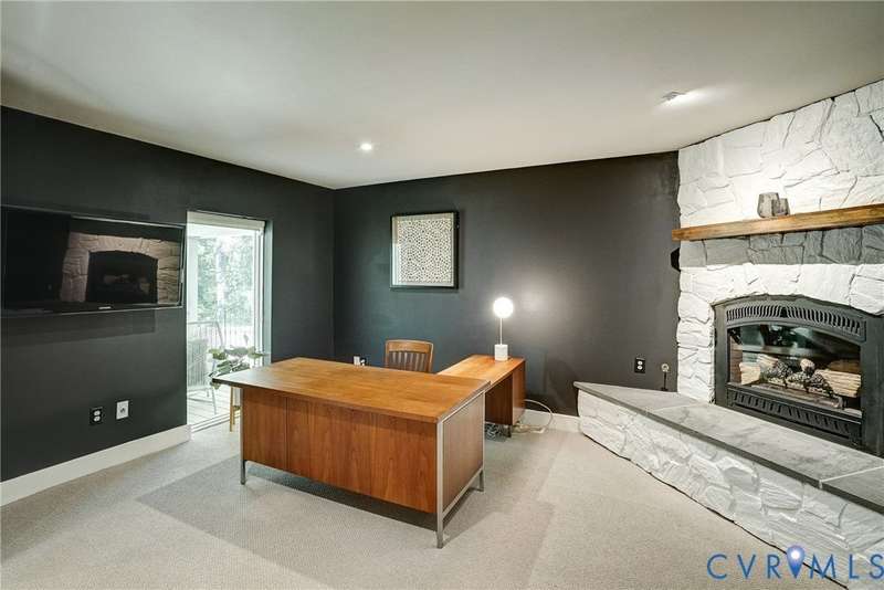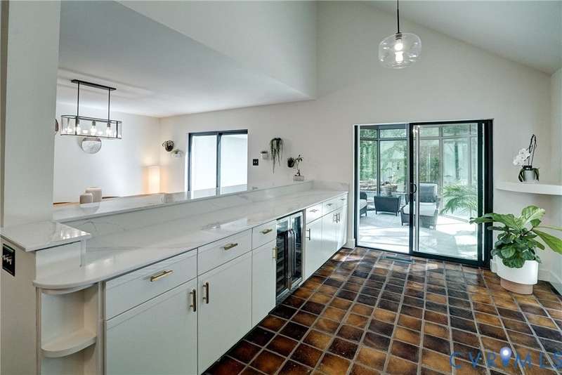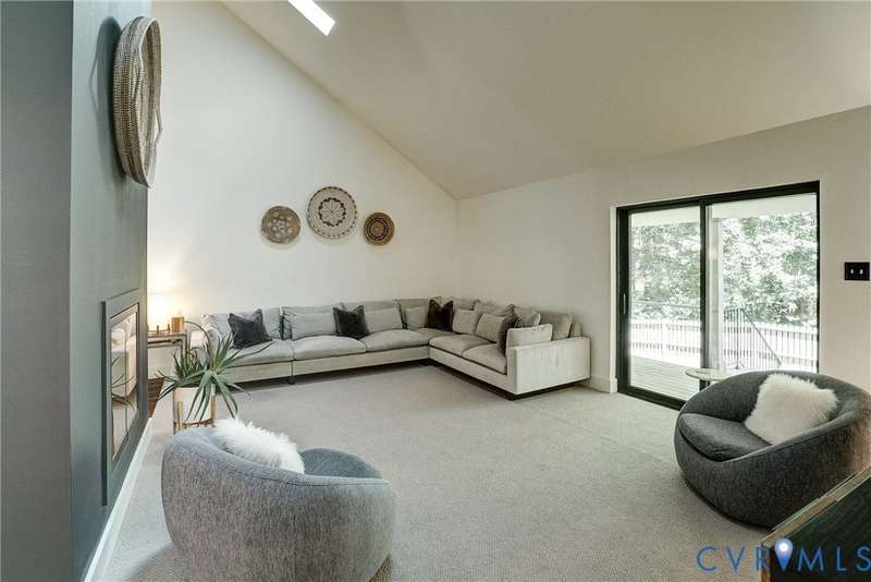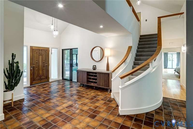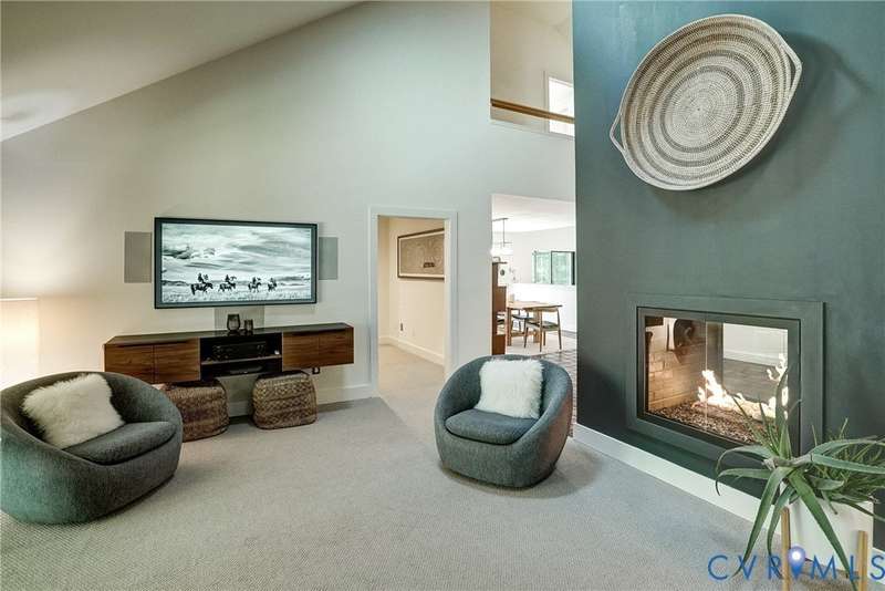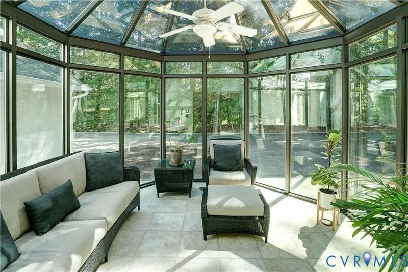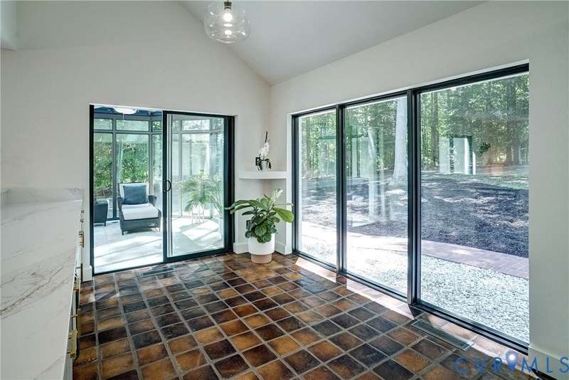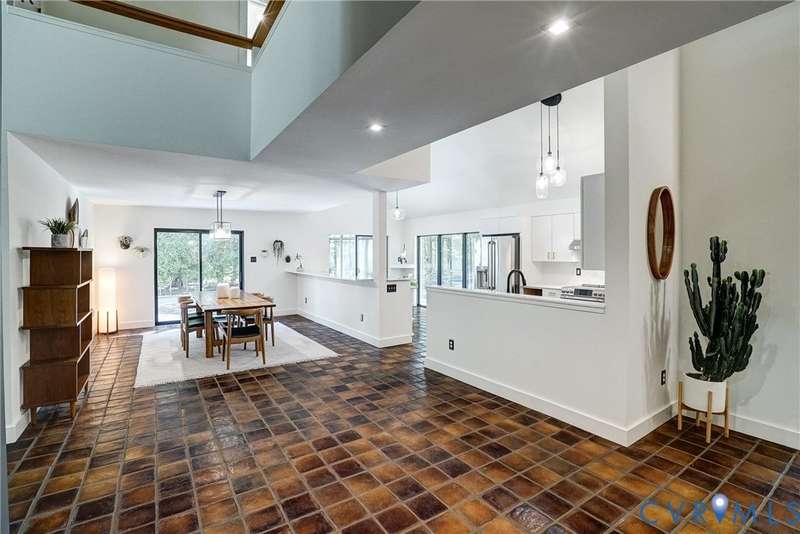 Hermitage Country Club living in Broad Run with neighborhood golf cart path access. Renovated interiors with vaulted ceilings, skylights and open concept living in this modern brick exterior home. The carved wood front door is stunning and welcomes guests into the Spanish tile floored foyer with its two-sided gas log fireplace that also is the centerpiece of the vaulted family room. First floor primary suite with hickory flooring, updated spa style shower and tub, quartz double vanity, water closet, walk-in closets and private balcony. Updated kitchen with original Spanish tile flooring in 2024-2025 with quartz countertops and backsplash, new stainless GE Cafe induction range with split oven, Bosch dishwasher, beverage refrigerator, open to casual dining area. Sunroom with vinyl flooring and mini-split adjoins the kitchen. First floor bedroom or office with corner stone gas log fireplace. Two second floor bedrooms and fully renovated bathroom with new flooring, shower, vanity and fixtures. The indoor heated, chlorine and gunnite pool was fully refurbished in 2020 and is 16' x 32' with an adjoining full bath with shower. Large front courtyard style patio off the pool room for relaxing or entertaining. Two-car garage is 24' x 23' and the RV garage is 18'x 47 with a pitched ceiling height of 15 1/2 to over 17'. Geothermal heat pump 2018, pool room heat pump 2024. Encapsulated crawl space with dehumidifier. Roof 2020 with skylights except for 2018 primary suite closet addition. Whole house generator. New carpet in 2024 in living room, bedroom/office and 2nd floor. Exterior painted cedar in 2024; interiors painted in 2024. Take your golf cart to the Hermitage Country Club clubhouse via the cart path from the end of Broad Run Rd across the lake dam with views of Sabot holes 18, 8 & 9.